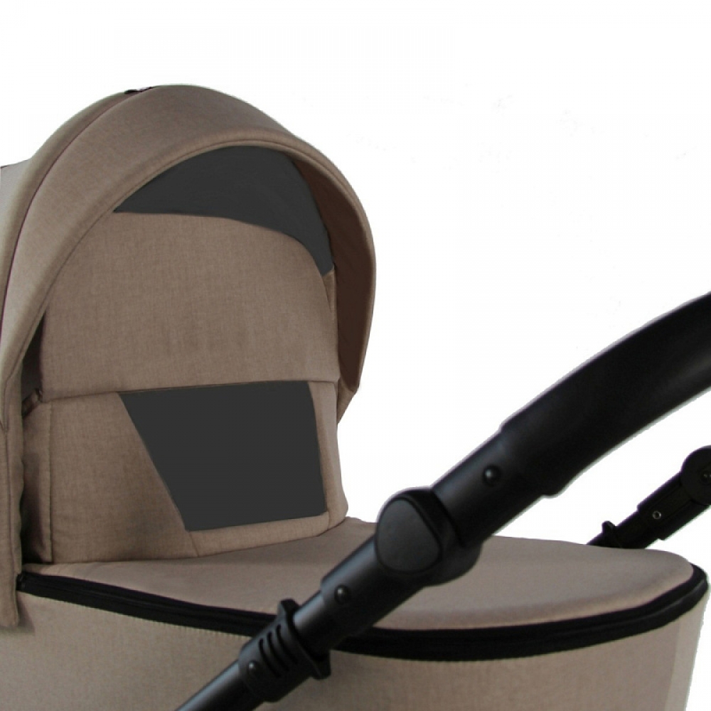 Люлька коляски пластиковая литая в сочетании с обшивкой из высококачественных материалов. Внешне коляска выглядит компактно, но внутренний размер люльки (спальное место - 78*36*20) позволяет комфортно разместиться малышу любой комплекции. Капор люльки оснащен открывающимся вентиляционным окошком со встроенной москитной сеткой, обеспечивающий дополнительную вентиляцию в жаркие дни. Утепленная накидка, которая крепится на люльку с помощью молнии, подходит для зимних прогулок и для межсезонья. Накидка с откидным клапаном, позволяет защитить малыша от ветра, дождя и снега. Для зрительного контакта с малышом производитель предусмотрел смотровое окошко.