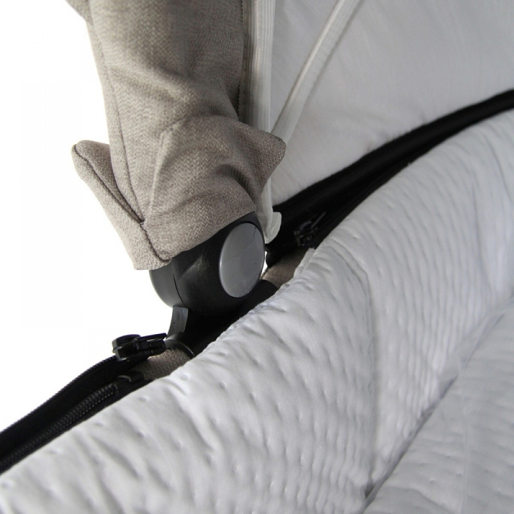 Внутренняя отделка на молнии выполнена из 100% хлопка. При необходимости ее можно снять и постирать. Люлька имеет многоступенчатую внешнюю регулировку подъёма изголовья.