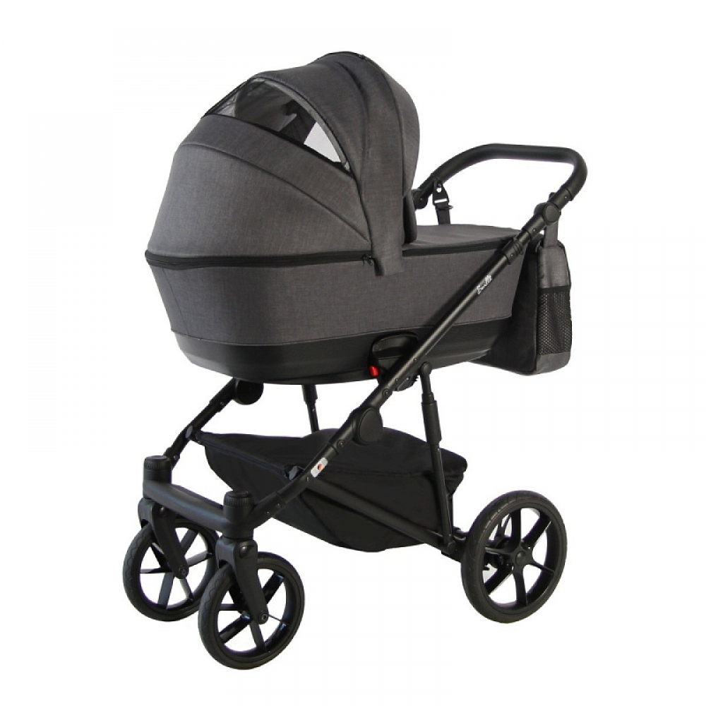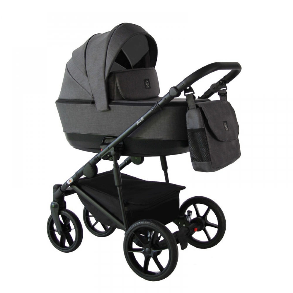 Коляска укомплектована стильной вместительной сумкой для мамы, закрытой корзиной для покупок выполненной из экокожи, съёмным держателем для бутылочек, москитной сеткой и плотным дождевиком.