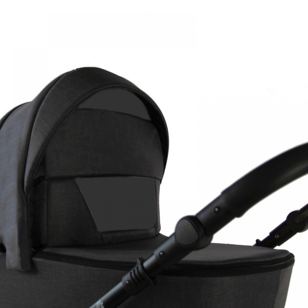 Люлька коляски пластиковая литая в сочетании с обшивкой из высококачественных материалов. Внешне коляска выглядит компактно, но внутренний размер люльки (спальное место - 78*36*20) позволяет комфортно разместиться малышу любой комплекции. Капор люльки оснащен открывающимся вентиляционным окошком со встроенной москитной сеткой, обеспечивающий дополнительную вентиляцию в жаркие дни. Утепленная накидка, которая крепится на люльку с помощью молнии, подходит для зимних прогулок и для межсезонья. Накидка с откидным клапаном, позволяет защитить малыша от ветра, дождя и снега. Для зрительного контакта с малышом производитель предусмотрел смотровое окошко.