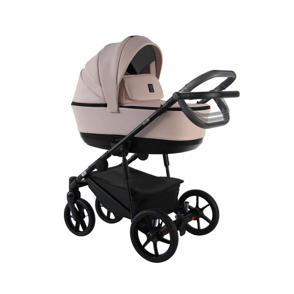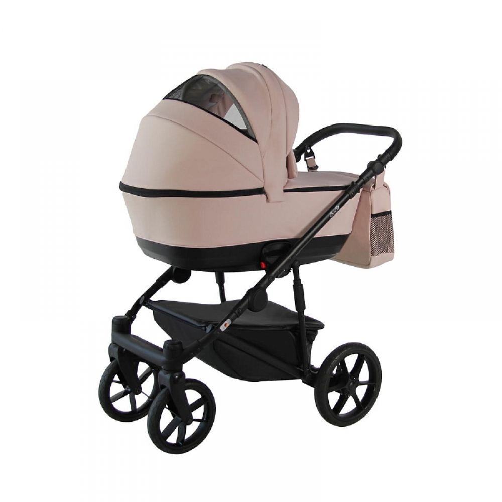 Коляска укомплектована стильной вместительной сумкой для мамы, закрытой корзиной для покупок выполненной из экокожи, съёмным держателем для бутылочек, москитной сеткой и плотным дождевиком.