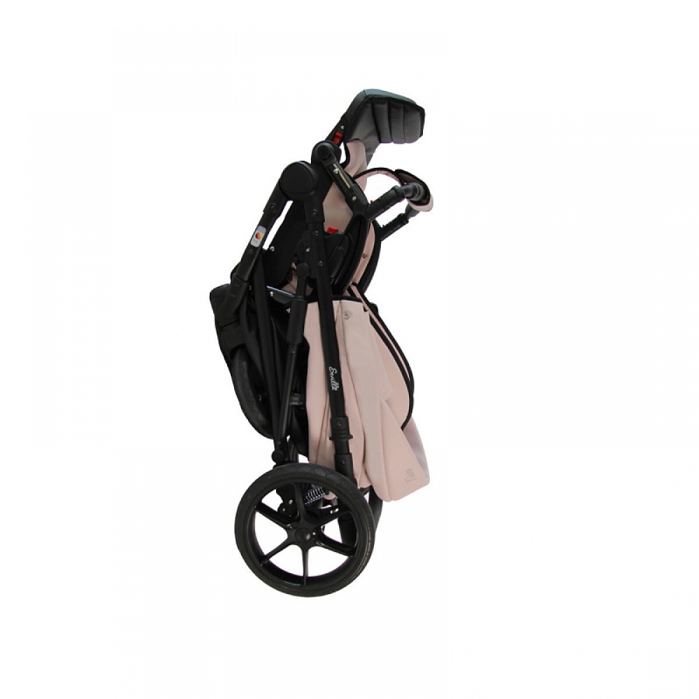 Рама коляски компактно складывается и может быть сложена даже с установленным прогулочным блоком.