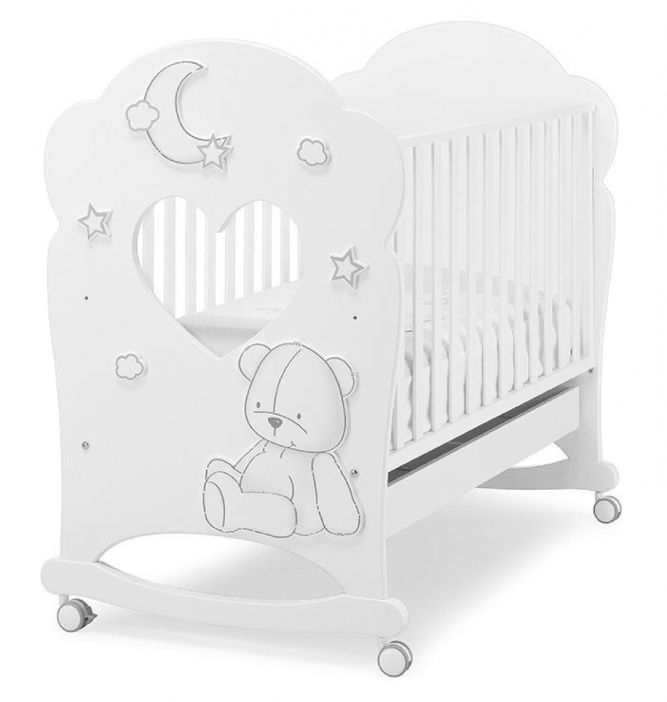 Функционал кроватки продуман до мелочей. Чтобы маме не наклоняться низко при укладывании и доставании из кроватки новорожденного, вы можете не только устанавливать дно в верхнем положении, но и опускать боковины. За счет колесиков мебель легко передвигать. Постельные принадлежности, игрушки и прочие вещи удобно хранить в подкроватном ящике.
