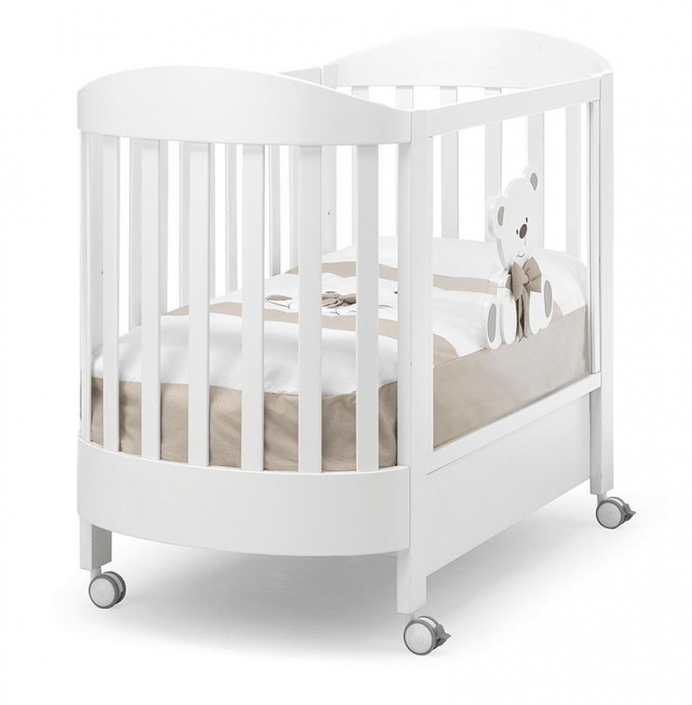 Кроватка Erbesi Tato Ovale может быть дополнена текстильными аксессуарами: постельное белье, тюлевый балдахин.