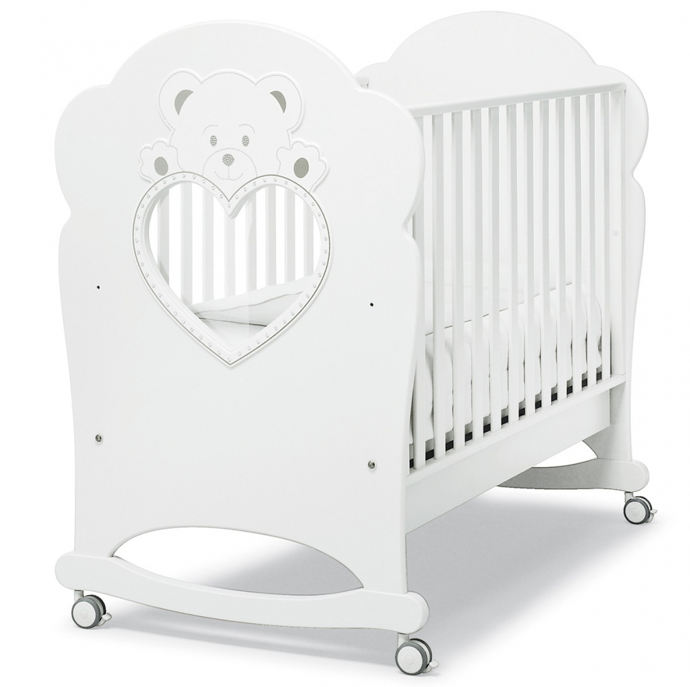 Детская кроватка Erbesi Cucciolo украшена окошком в виде медвежонка, обрамленного россыпью кристаллов. Нежный белый цвет придаст очаровательность и элегантность комнате маленького владельца. Стильный элегантный дизайн с элементами из кристаллов Swarovski, а так же высокое качество используемых материалов наполнят комнату атмосферой уюта и тепла. Особенности кроватки делают ее не только красивым, но и удобным и функциональным предметом интерьера детской комнаты.