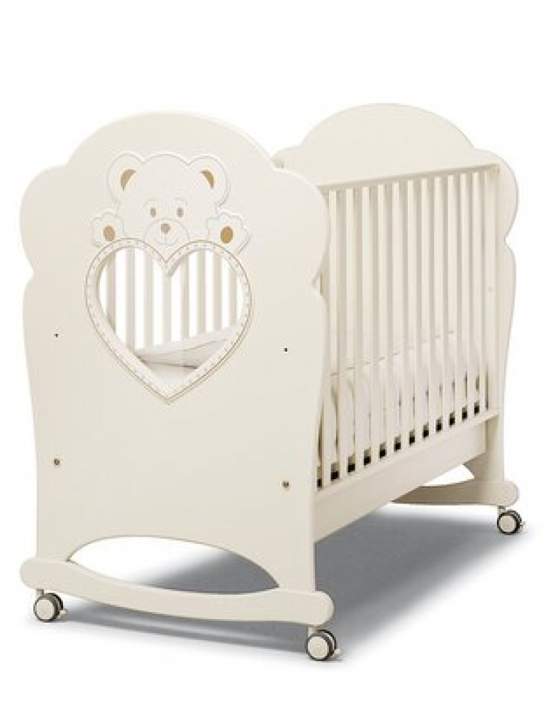Детская кроватка Erbesi Cucciolo 125х65 см колесо-качалка слоновая кость
