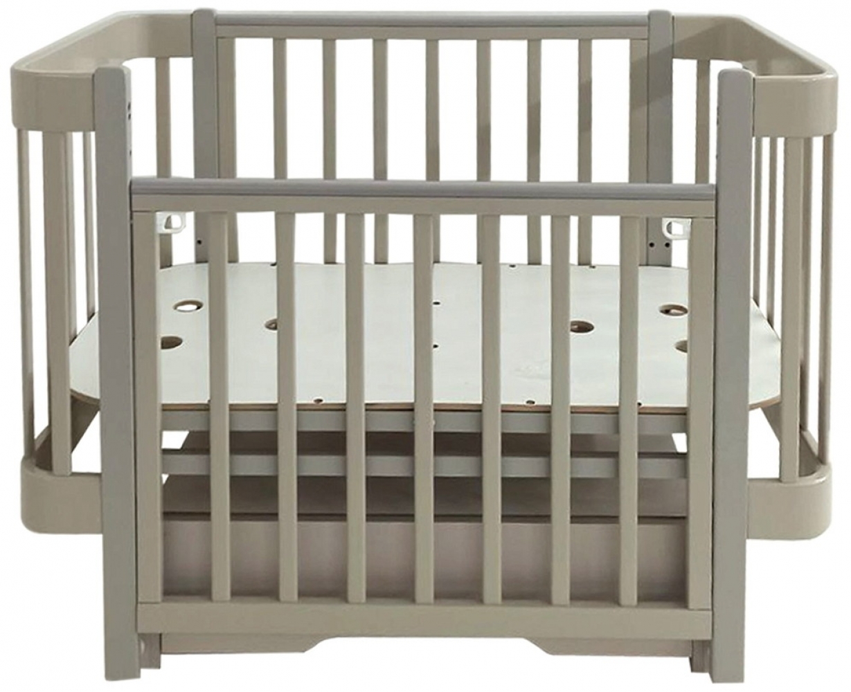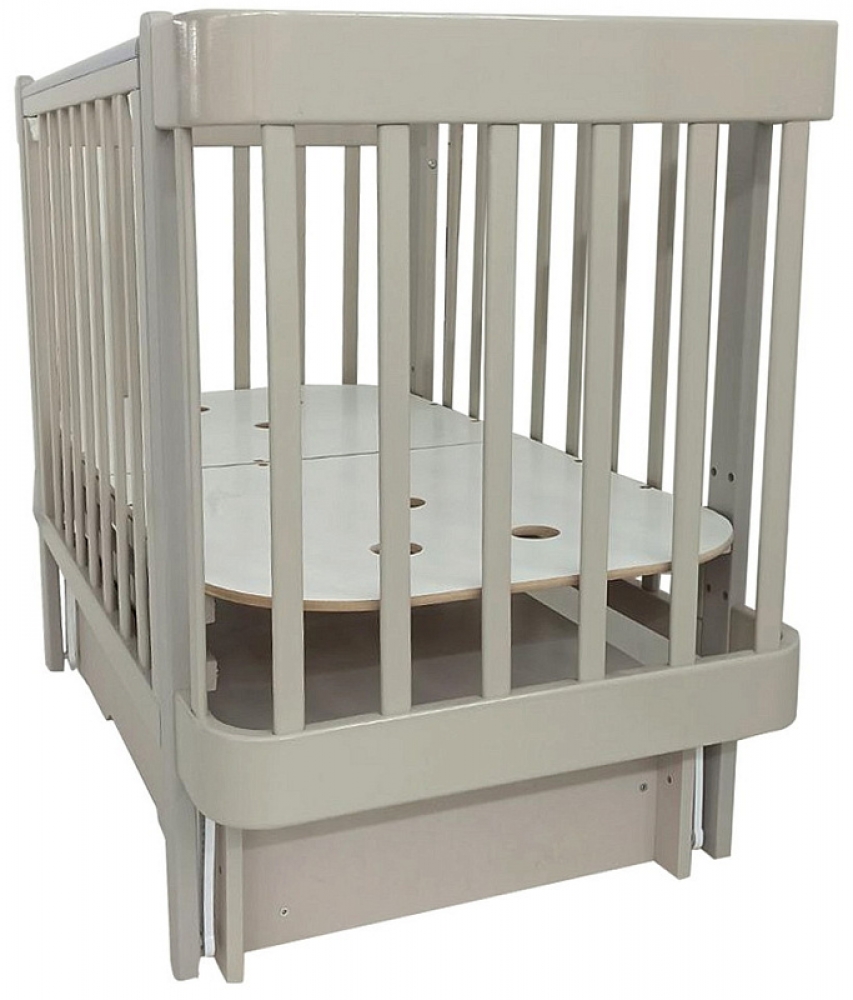 Ложе кроватки имеет 4 положения по высоте: от пола (25 см±1 см; 34 см±1-2 см; 40,5 см±1-2 см; 47 см±1-2 см).