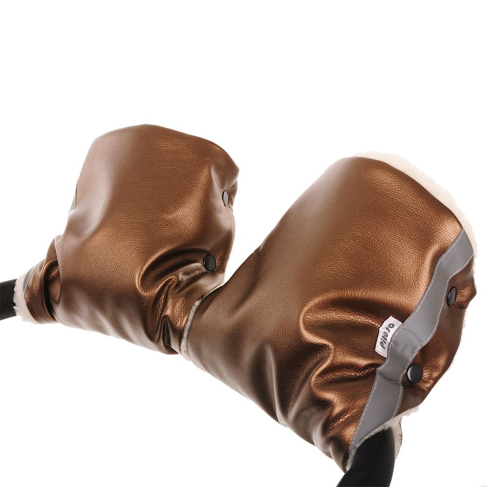 Муфты-варежки Pituso в цвете Бронза (Эко-кожа) для детских колясок, санок. Покрытие из экокожи. В комплекте 2 штуки. Внутри меховая вставка. Муфты утеплены и отделаны натуральной шерстью (30%) на трикотажной основе. На муфтах нашиты светоотражающие элементы. Состав: верх - экокожа, наполнитель - 100% ПЭ, подкладка - трикотажный мех 30% овечья шерсть, 70% ПЭ. Размер: 23*22*5 см (2 шт).
