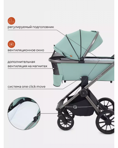 • Быстросъемная люлька в этой модели дополнена специальными кнопками с памятью. Инновация позволяет непринужденно снимать спальный блок одной рукой.