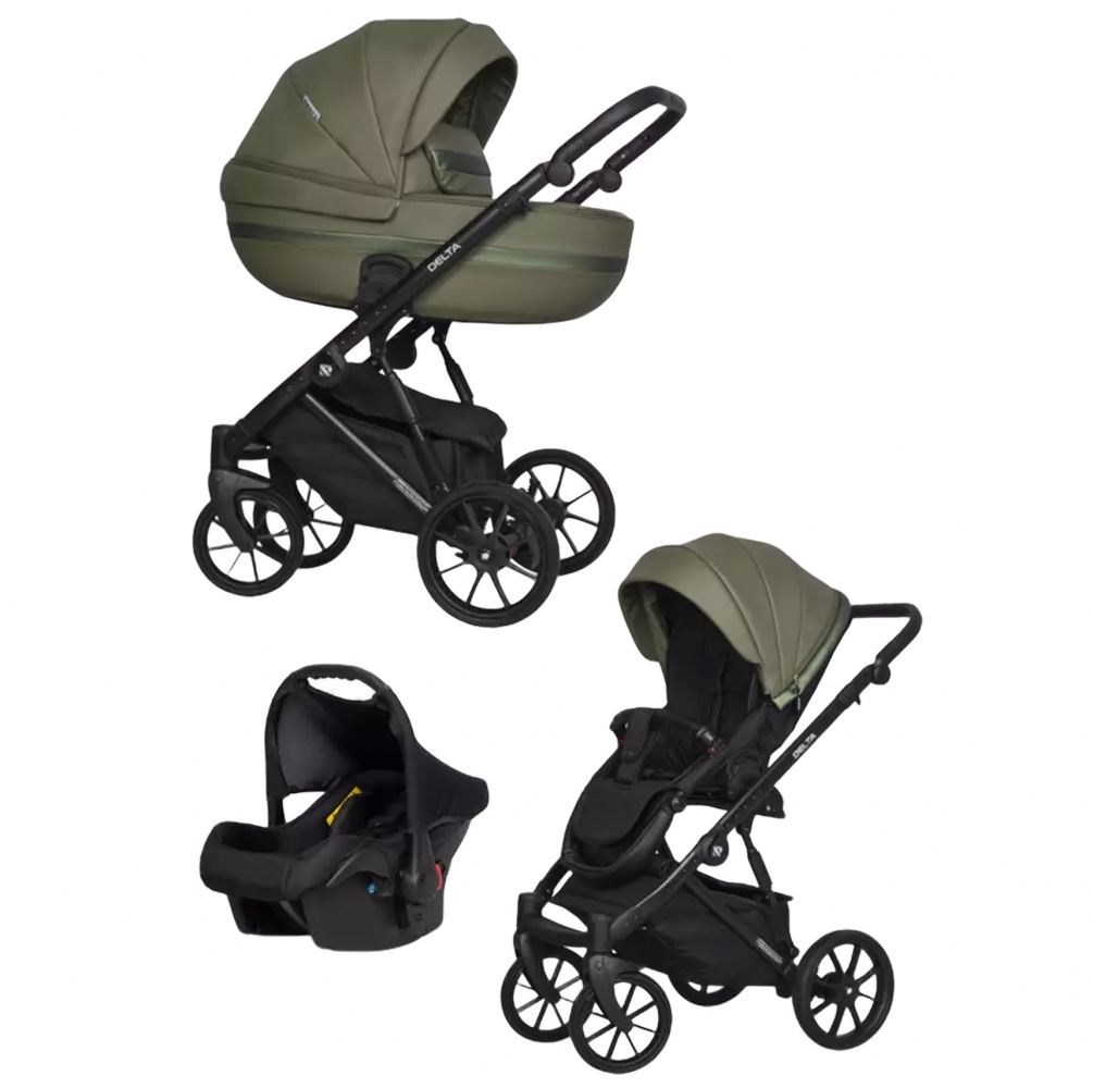 Коляска 3 в 1 Riko Basic Delta Ecco в цвете 13 Olive - очень стильная и современная коляска из высококачественной обивки с красивой отделкой из эко кожи. Она яркая, элегантная и привлекает внимание своим внешним видом. Большая комплектация позволит гулять с ребенком в любую погоду и не докупать ни чего лишнего.Модульная коляска представляет собой легкую и компактную алюминиевую раму и 3 сменных блока: люлька, прогулочный блок и автокресло. Каждый блок рассчитан на определенный возраст ребенка, обеспечивая безопасность и комфорт ребенка во время прогулки. Установка блоков осуществляется с помощью системы one click move одним движением, что позволит маме самостоятельно заменить блок при необходимости.Коляска оснащена современной и легкой рамой и колесами из вспененной резины. Такие колеса очень практичны, ведь они не требуют дополнительного сервисного обслуживания, не прокалываются и более долговечны по сравнению с пластиковыми колесами. Регулируемая амортизация настраивается в зависимости от веса ребенка и качества дорог. Вы всегда сможете настроить коляску, делая ход более мягким или более жестким.