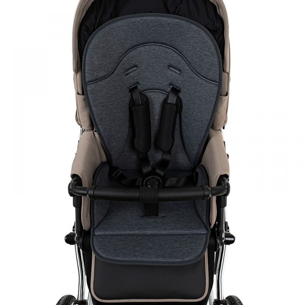 Прогулочный блок имеет пятиточечные ремни безопасности и бампер-ограничитель с отделкой из экокожи. Бампер можно отсоединить с одной стороны и просто откинуть для удобства посадки ребенка.