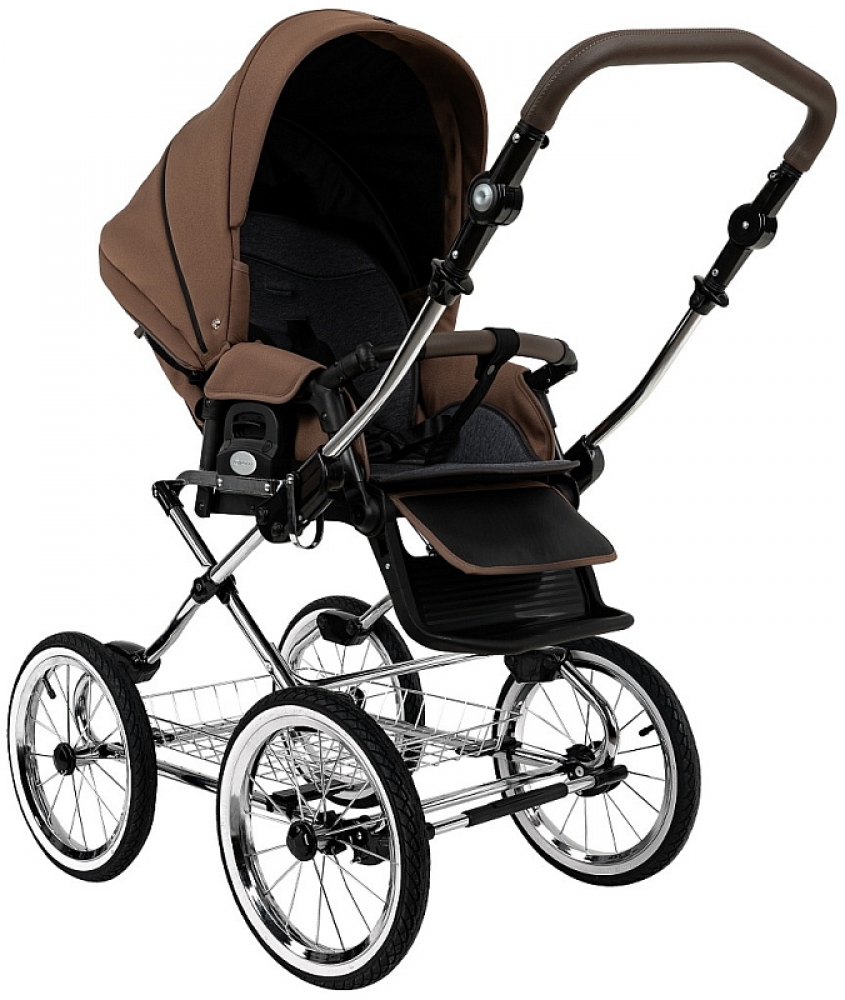 Детская коляска Roan Bass Next Classic 2.0 d14 3 в 1 с автокреслом Tutis Elo Lux EduSky Black BSNC/91/2 Mocha Mousse/Black/руч.Cappuccino