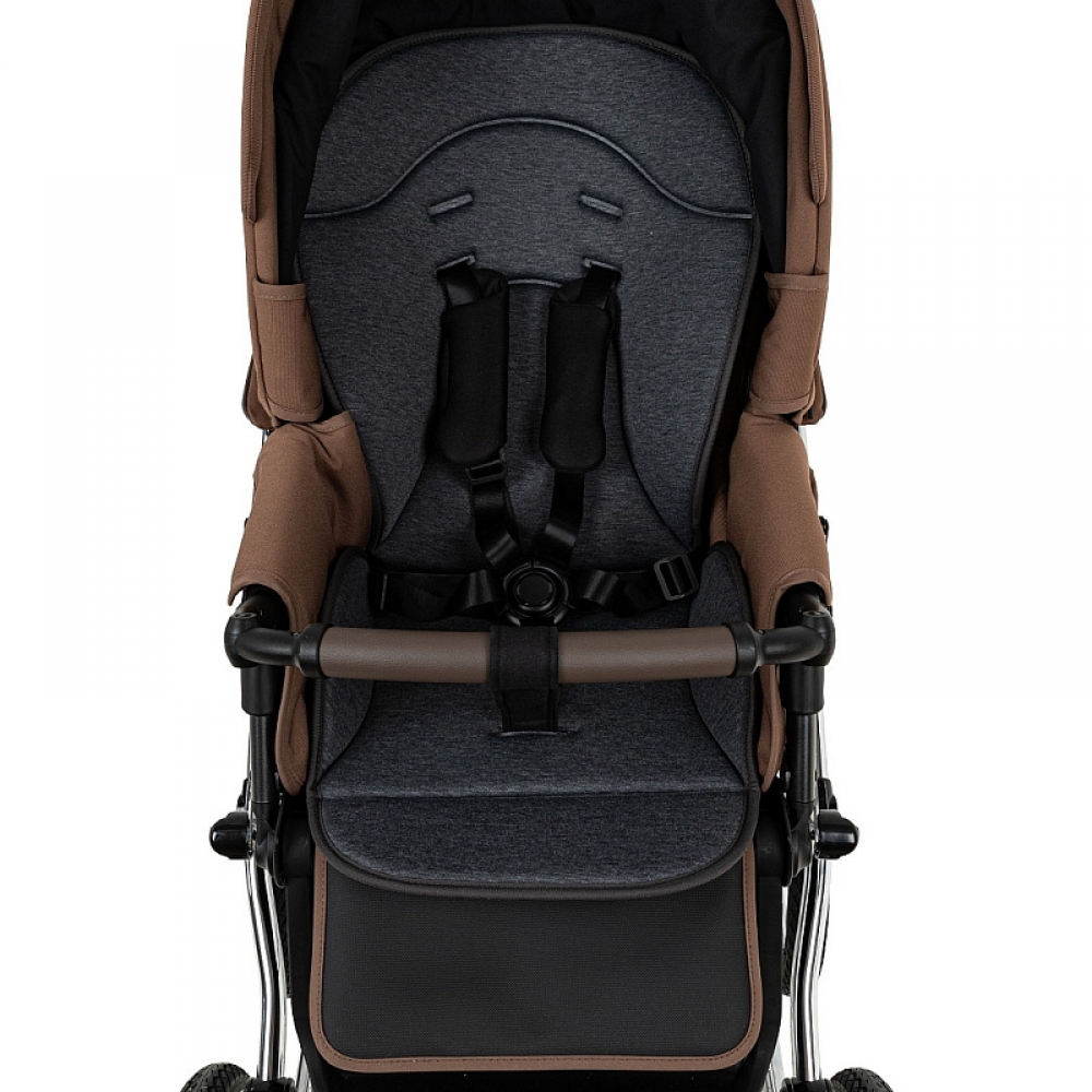 Прогулочный блок имеет пятиточечные ремни безопасности и бампер-ограничитель с отделкой из экокожи. Бампер можно отсоединить с одной стороны и просто откинуть для удобства посадки ребенка.