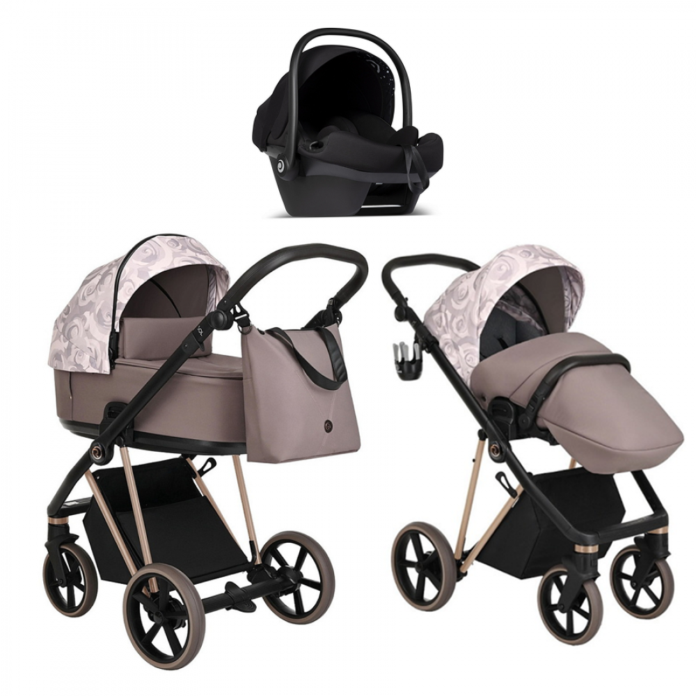 Детская коляска Roan Sol Flowers 3 в 1 с автокреслом Tutis Elo Lux EduSky Black RSF/5001 Powder/Rose gold