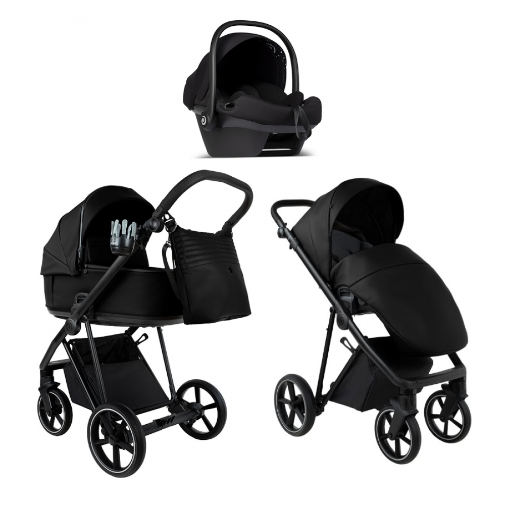 Детская коляска Roan Sol Vintage Leather 2.0 3 в 1 с автокреслом Tutis Elo Lux Edusky Black SL/10/L Black/Black/руч.Черный