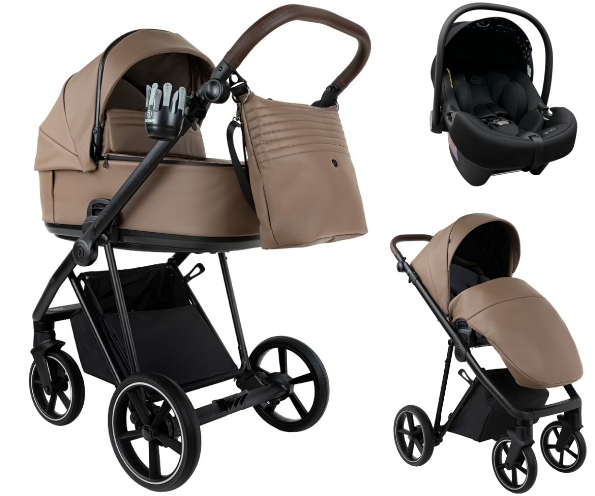 Детская коляска Roan Sol Vintage Leather 2.0 3 в 1 с автокреслом Tutis Elo Lux Edusky Black SL/11/L Camel/Black/руч.Тем.коричневый