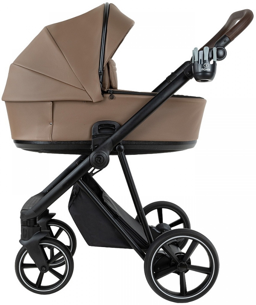 Детская коляска Roan Sol Vintage Leather 2.0 3 в 1 с автокреслом Tutis Elo Lux Edusky Black SL/12/L Island Stone /Black/ руч.Коричневый