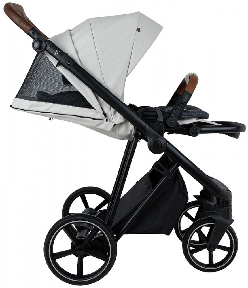 Большая полноразмерная, бескаркасная люлька, предусмотрена глубокая система вентиляции нового поколения «double Air». Отделка внутренней части люльки выполнена из хлопковой натуральной ткани, имеется дополнительный бортик для использования коляски в зимний период. Новый матрасик- гипоаллергенный и обладает антибактериальными свойствами. Двусторонний, из ткани и 3D-сетки. 3D-структура с более чем 80% объема воздуха.  Внутри матрасика дышащий материал AirZone 3D.