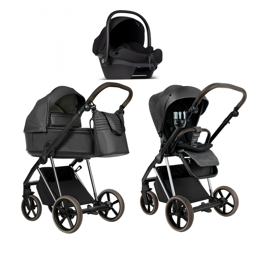 Детская коляска Roan Sol Vintage Luxury Leather 3 в 1 с автокреслом Tutis Elo Lux EduSky Black VEGA99DB Woodland Gray/Nickel/руч.Cappuccino