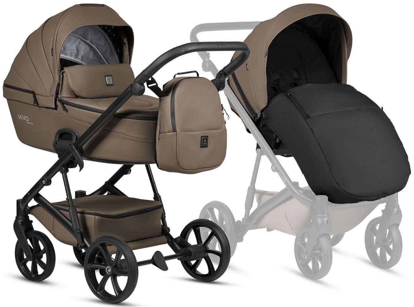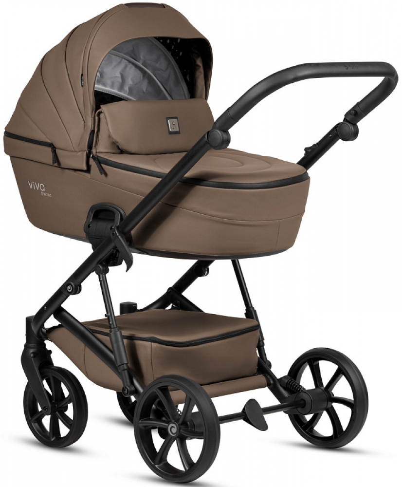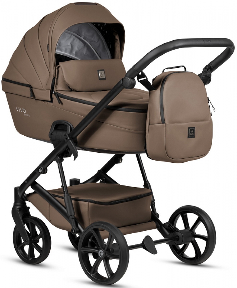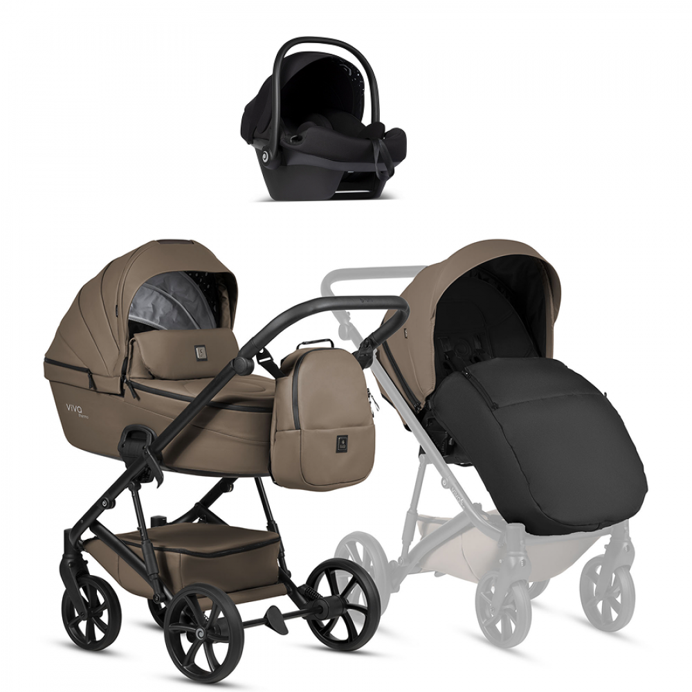Детская коляска Tutis Viva 6 Plus Leather 3 в 1 с автокреслом Elo Lux EduSky Black 1612149 Cappuccino
