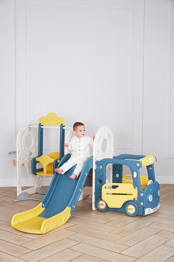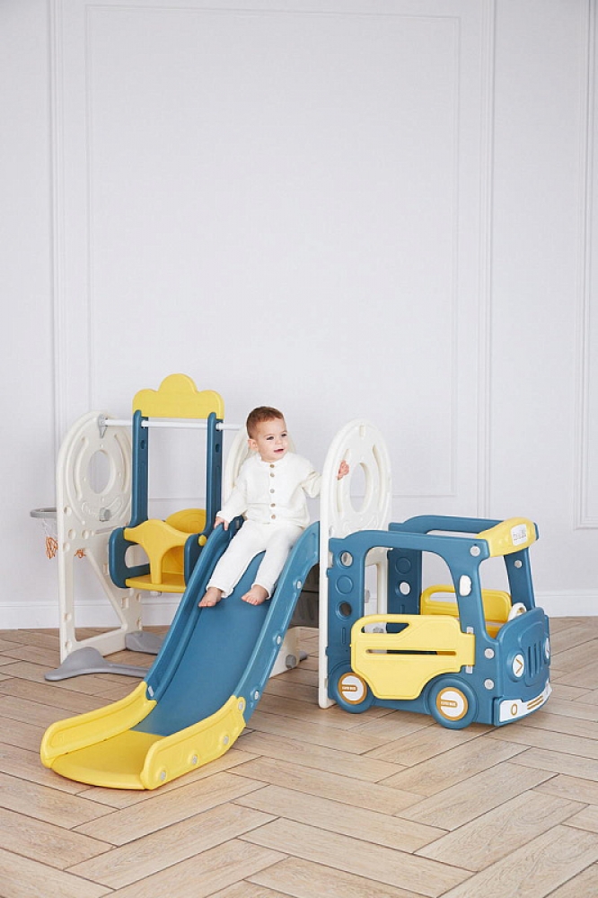 Игровой комплекс с горкой и качелями UNIX Kids Bus 171 см Yellow