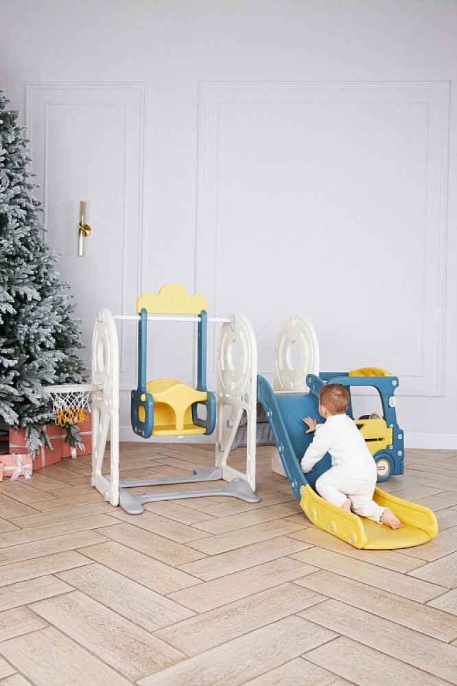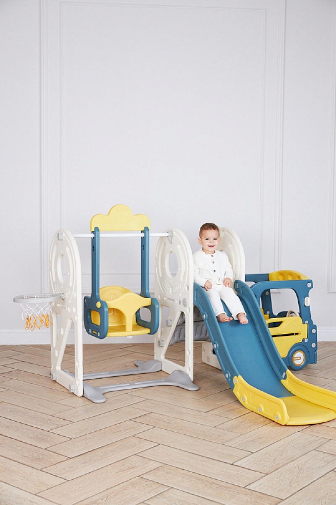 Мы уделяем внимание каждой детали, поэтому все элементы пластикового комплекса имеют закругленную форму во избежание травм. Прочный пластик не боится UV лучей и не выгорает на солнце, поэтому вы смело можете использовать комплекс с горкой не только дома, но и на улице! Детский игровой комплекс состоит из удобной горки, машинки и баскетбольного кольца, в некоторых моделях поставляется качель.