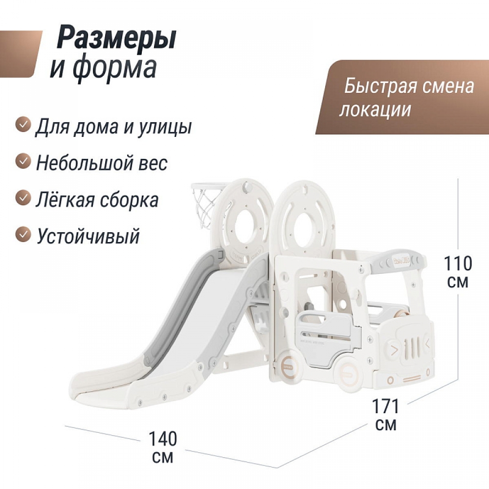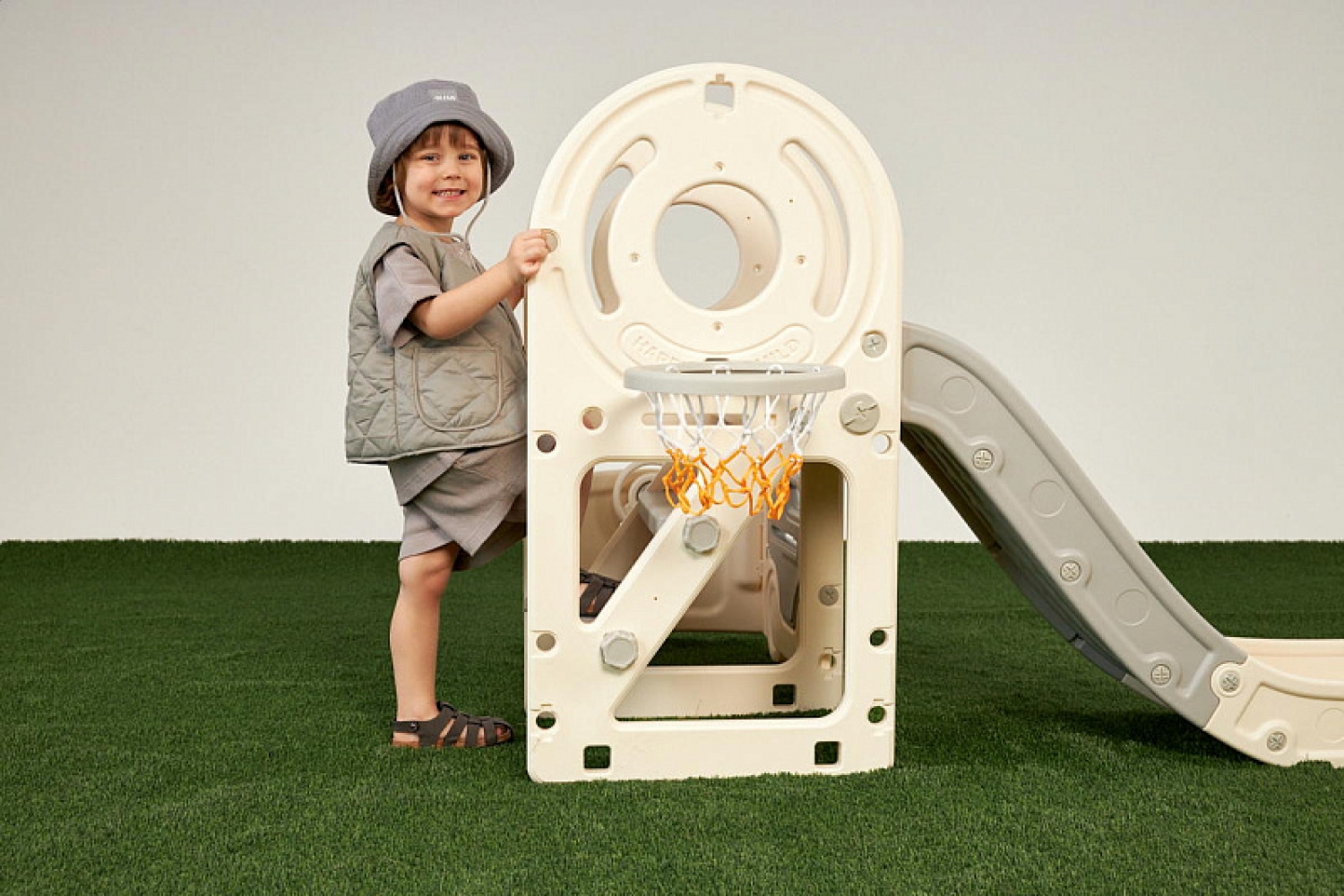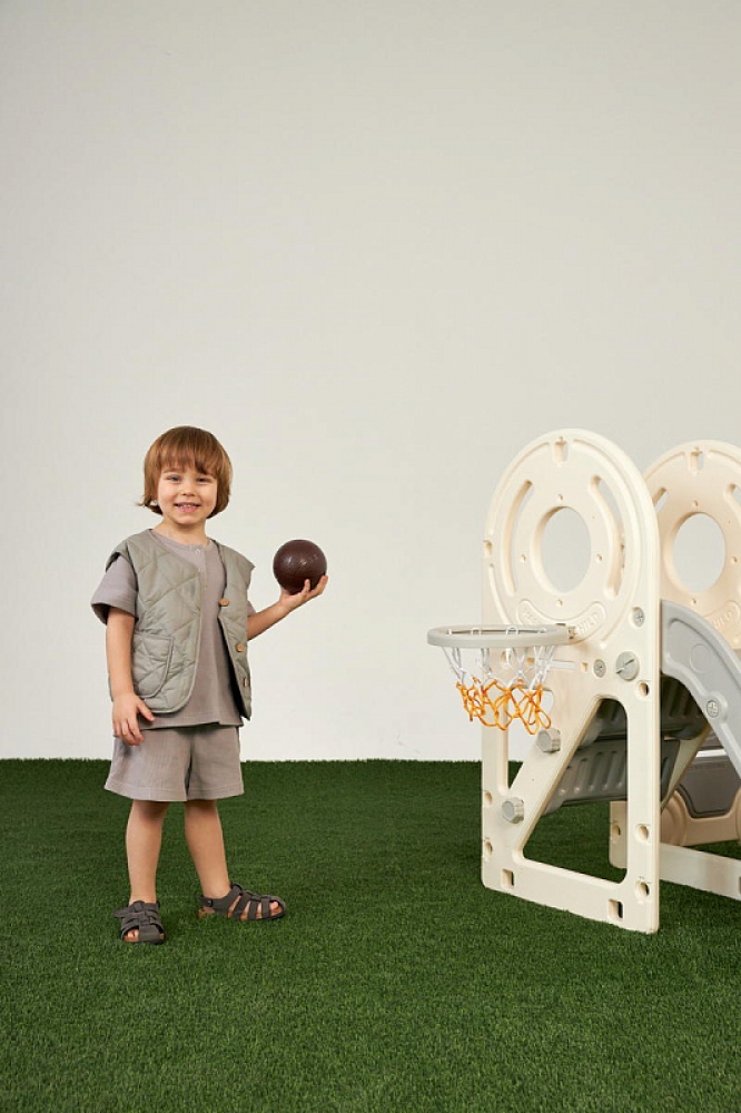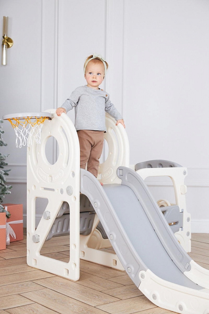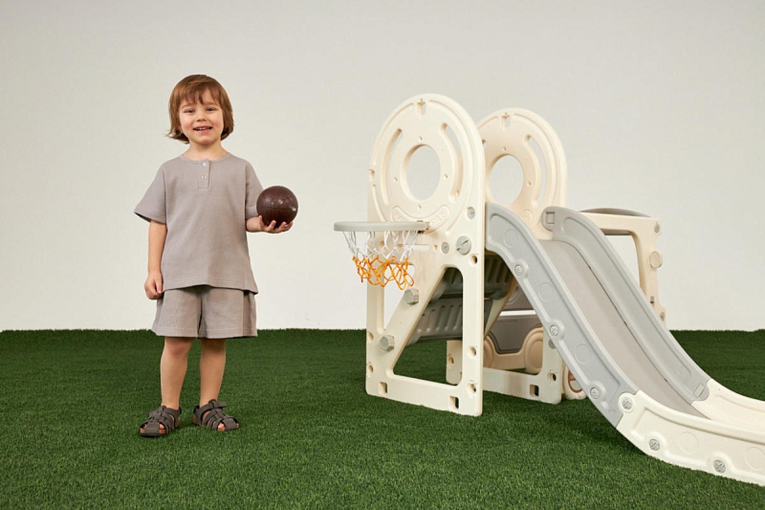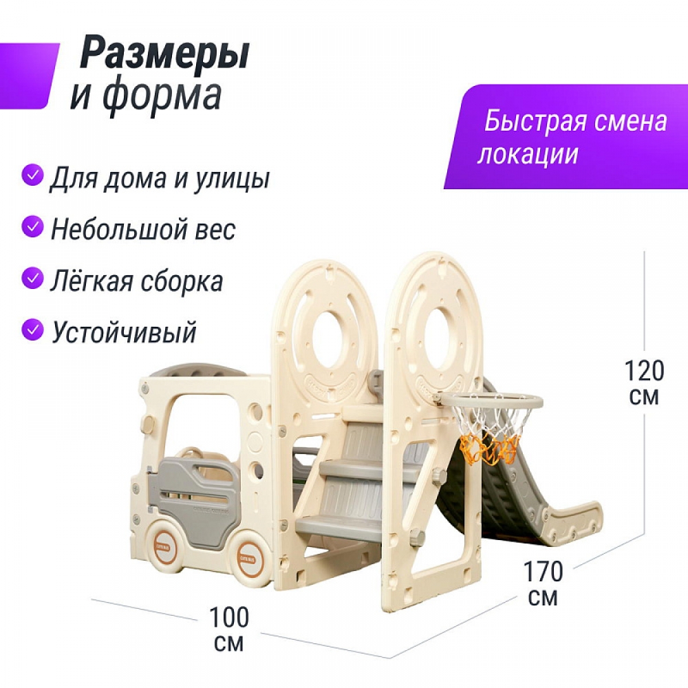 Мы уделяем внимание каждой детали, поэтому все элементы пластикового комплекса имеют закругленную форму во избежание травм. Прочный пластик не боится UV лучей и не выгорает на солнце, поэтому вы смело можете использовать комплекс с горкой не только дома, но и на улице! Детский игровой комплекс состоит из удобной горки, машинки и баскетбольного кольца, в некоторых моделях поставляется качель.