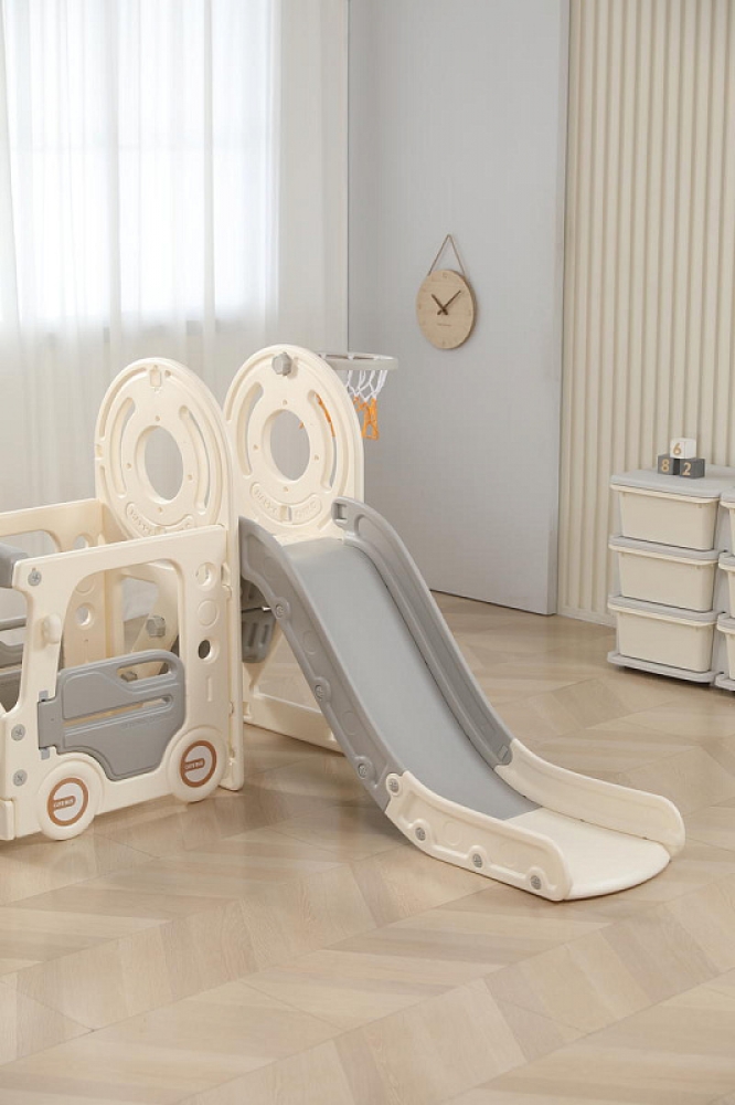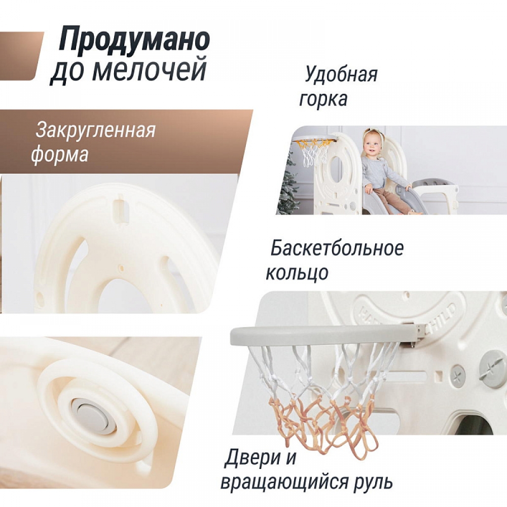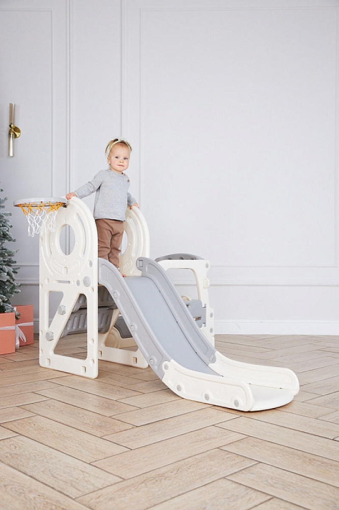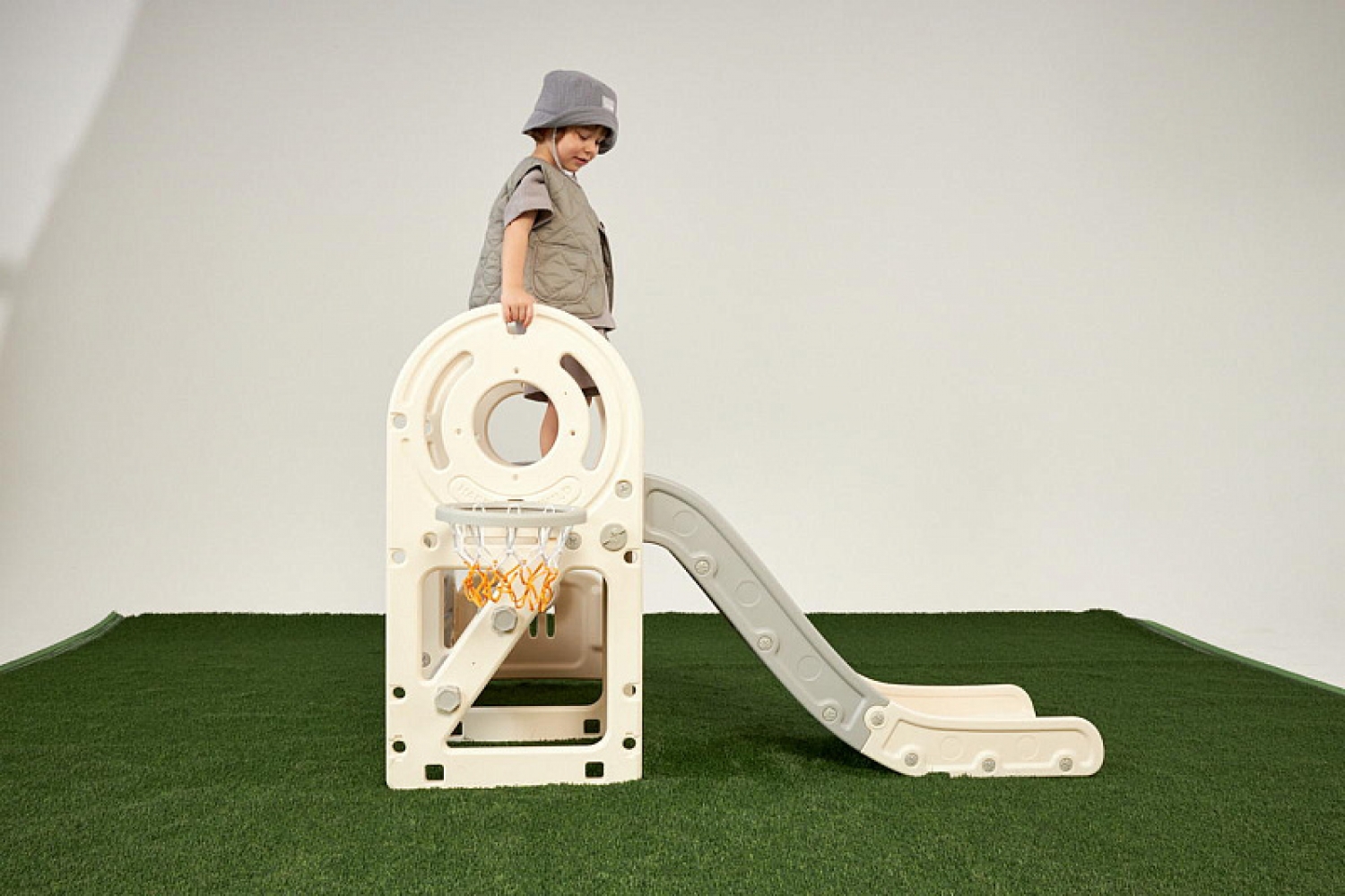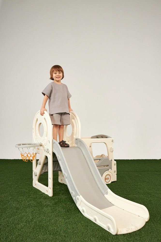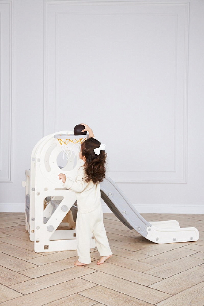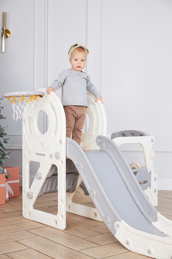 Мы уделяем внимание каждой детали, поэтому все элементы пластикового комплекса имеют закругленную форму во избежание травм. Прочный пластик не боится UV лучей и не выгорает на солнце, поэтому вы смело можете использовать комплекс с горкой не только дома, но и на улице! Детский игровой комплекс состоит из удобной горки, машинки и баскетбольного кольца, в некоторых моделях поставляется качель.