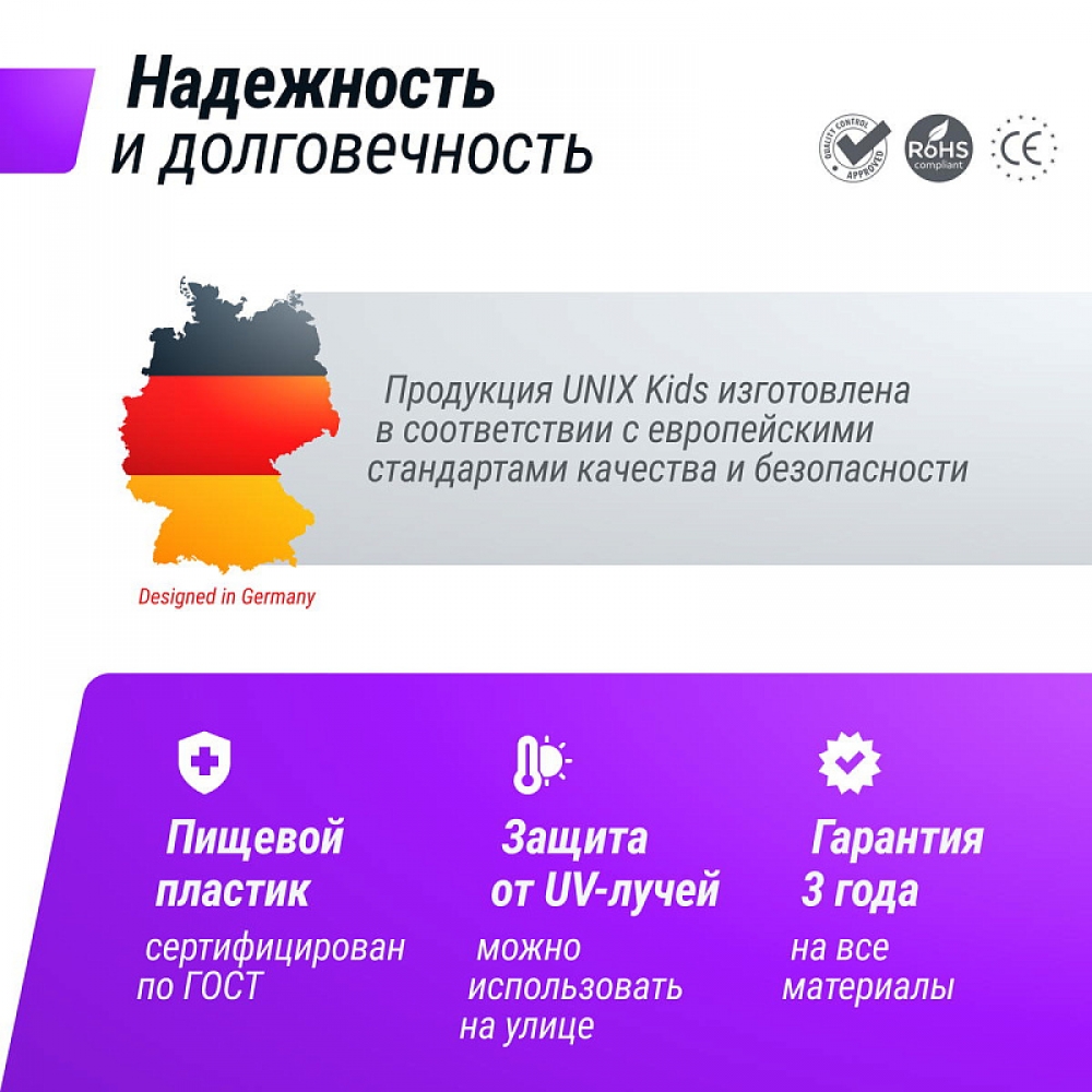 Оптимальный размер игрового комплекса для детей UNIX Kids Bus позволит установить его как дома, так и на улице. Мы уверены, что маленькие непоседы с друзьями придумают множество игр в нашем игровом пространстве! Ребенок, играя, будет развиваться физически, а, придумывая различные сценарии игр, будет развивать воображение и творческие способности!
