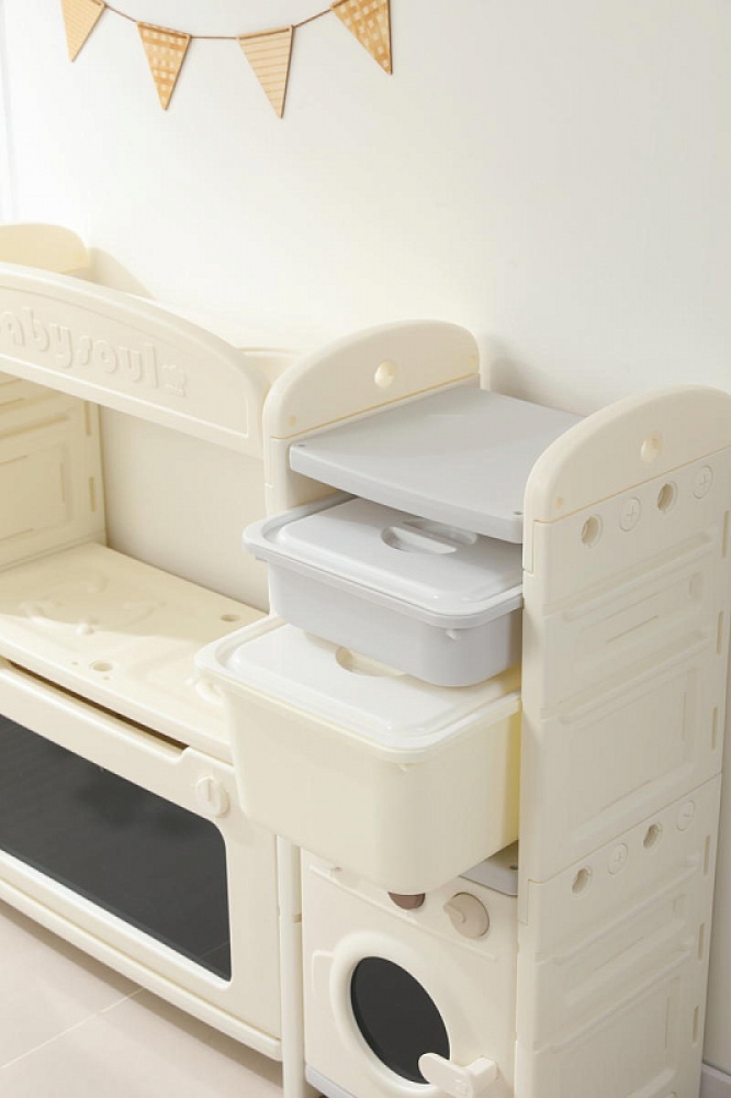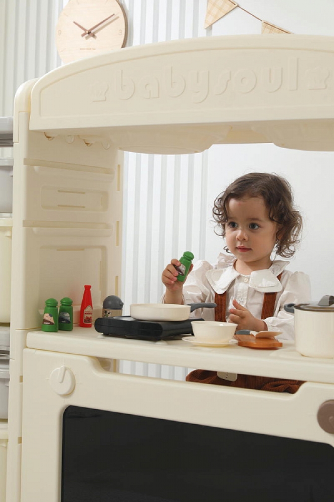 Развивающая игрушка кухня по системе Монтессори способствует развитию мелкой моторики, логического мышления и креативности. Ребенок сможет изучать основы приготовления пищи, комбинировать различные ингредиенты и даже разрабатывать свои собственные рецепты! В процессе игры малыш научится различать продукты, кухонные принадлежности, столовые приборы и поймет, как работает плита и духовка. А вместительные ящики с крышками можно использовать для хранения посуды и продуктов из набора.