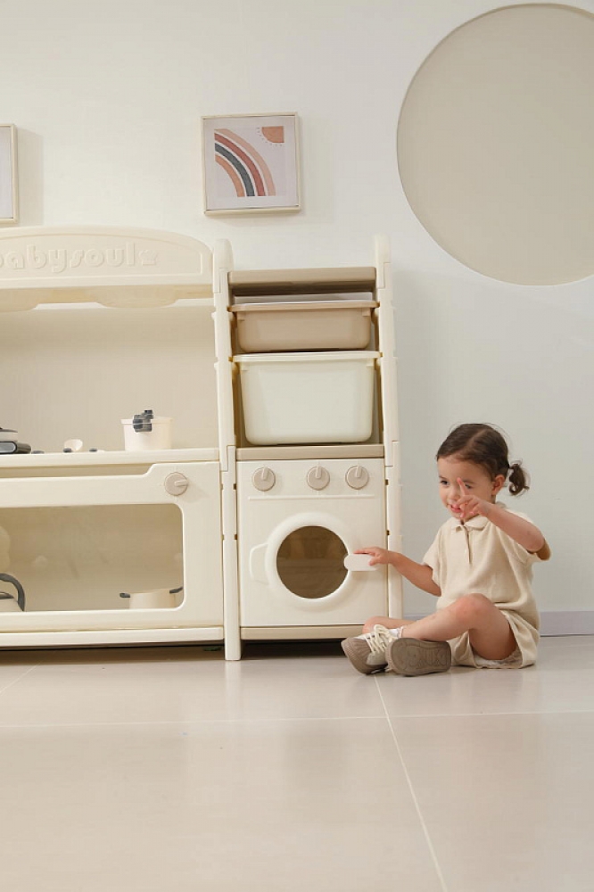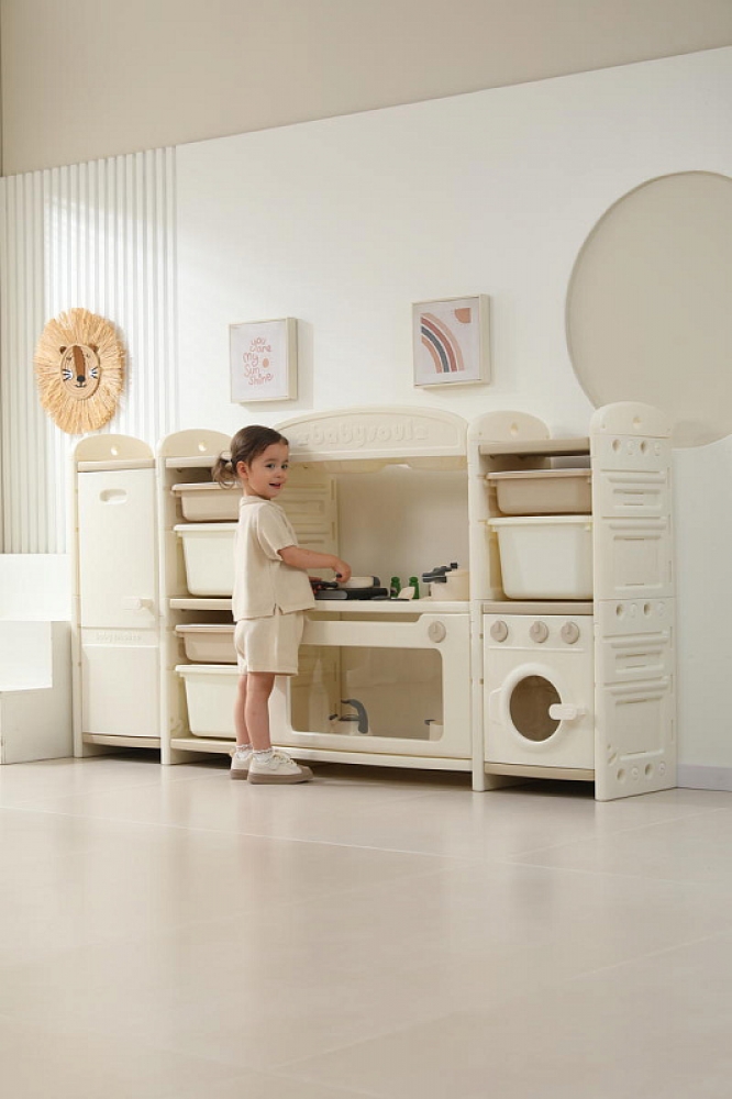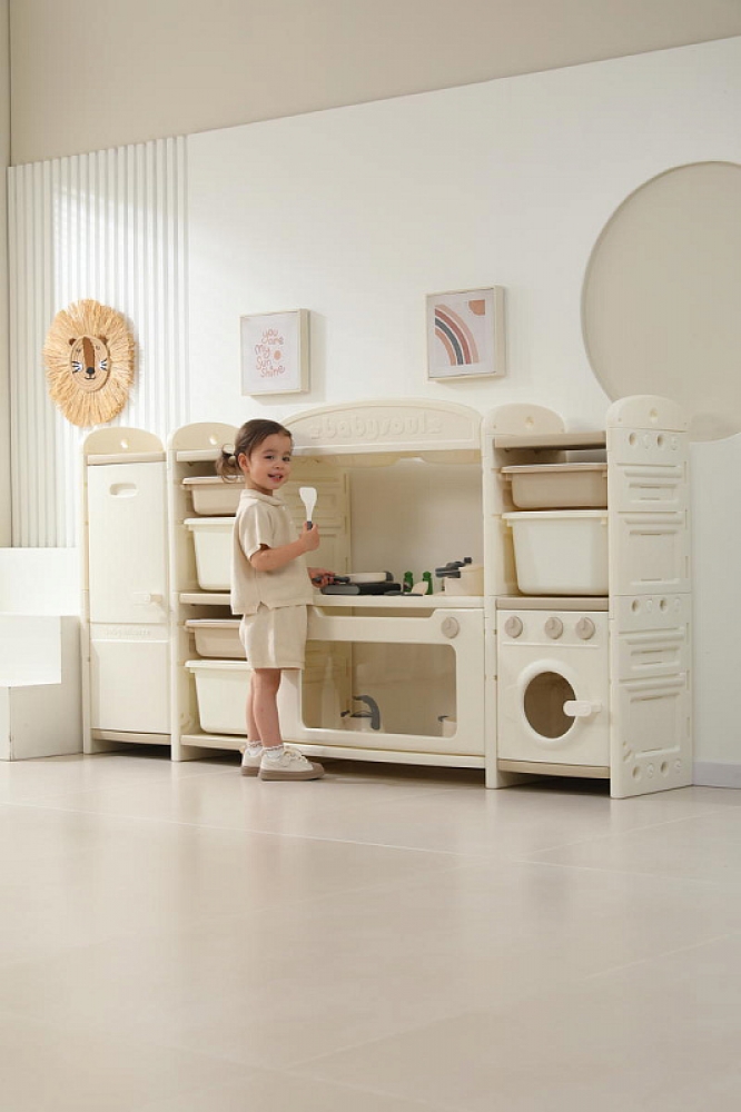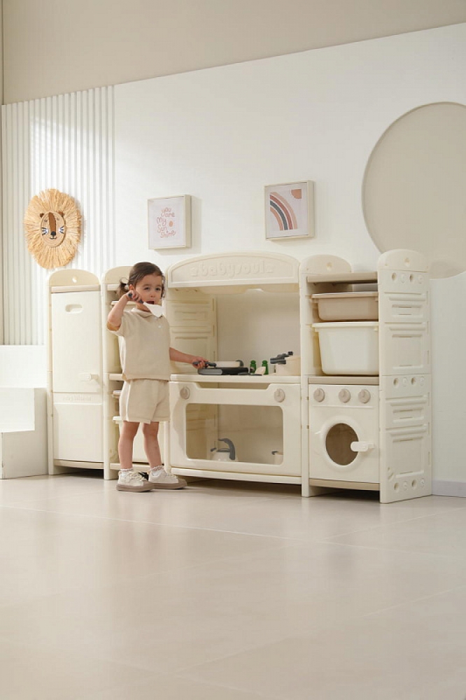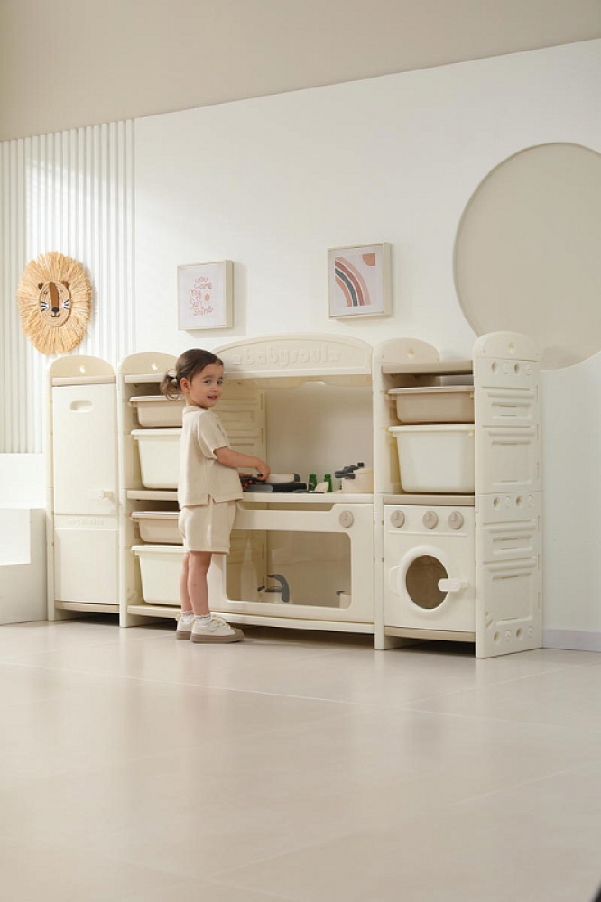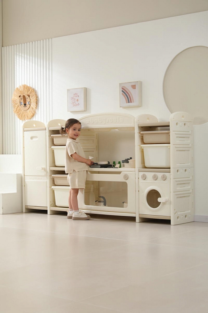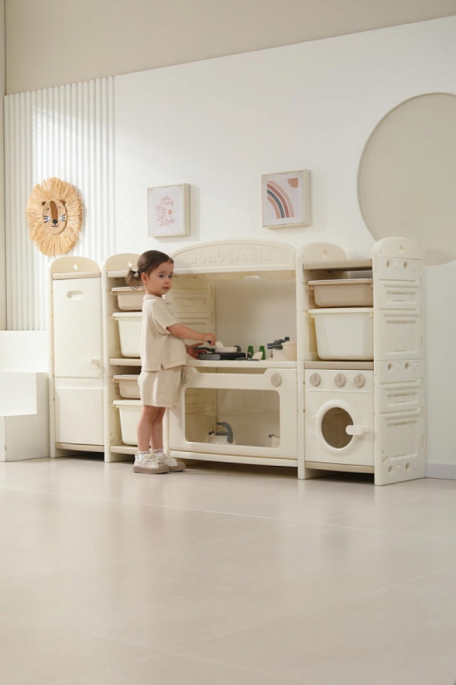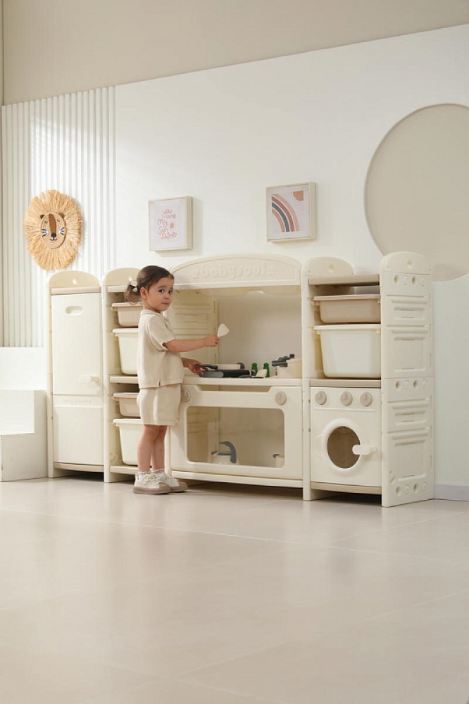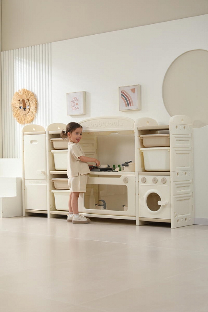 Развивающая игрушка кухня по системе Монтессори способствует развитию мелкой моторики, логического мышления и креативности. Ребенок сможет изучать основы приготовления пищи, комбинировать различные ингредиенты и даже разрабатывать свои собственные рецепты! В процессе игры малыш научится различать продукты, кухонные принадлежности, столовые приборы и поймет, как работает плита и духовка. А вместительные ящики с крышками можно использовать для хранения посуды и продуктов из набора.