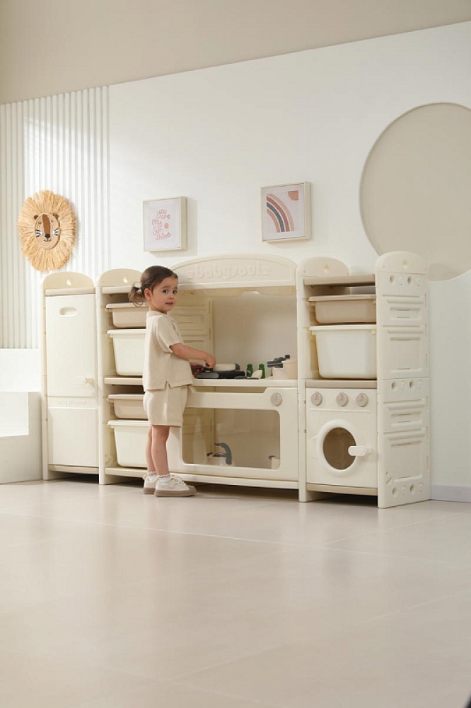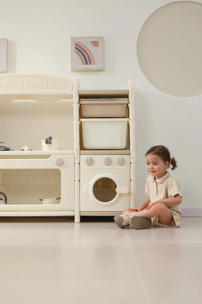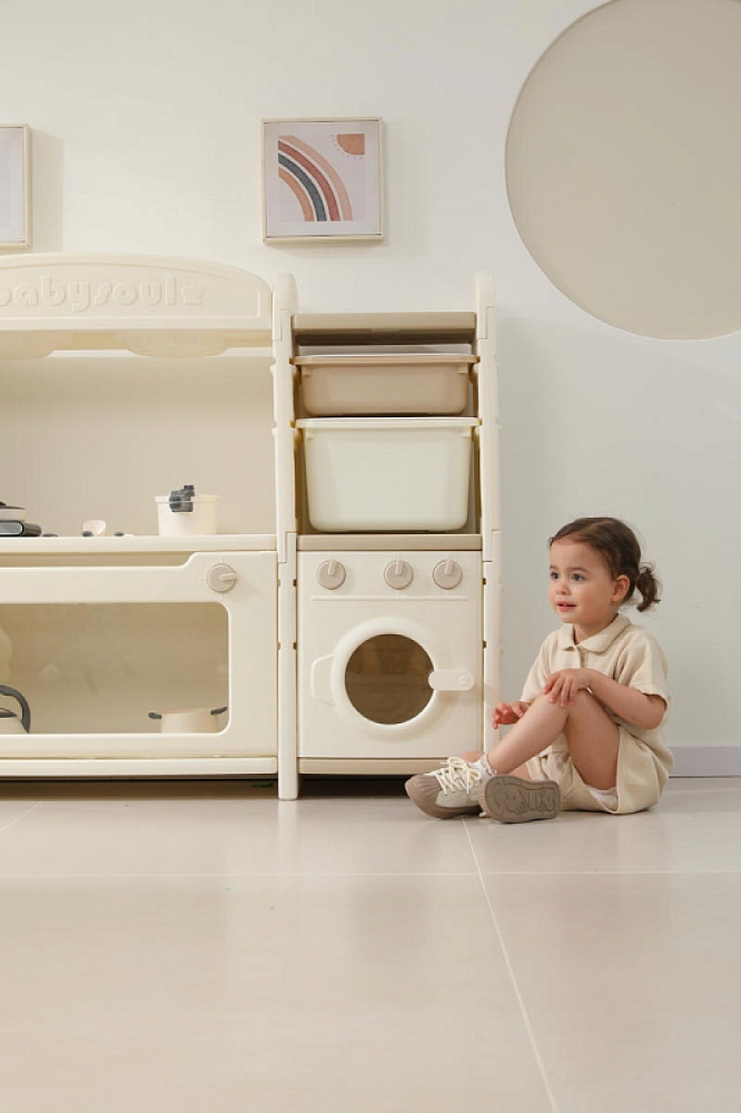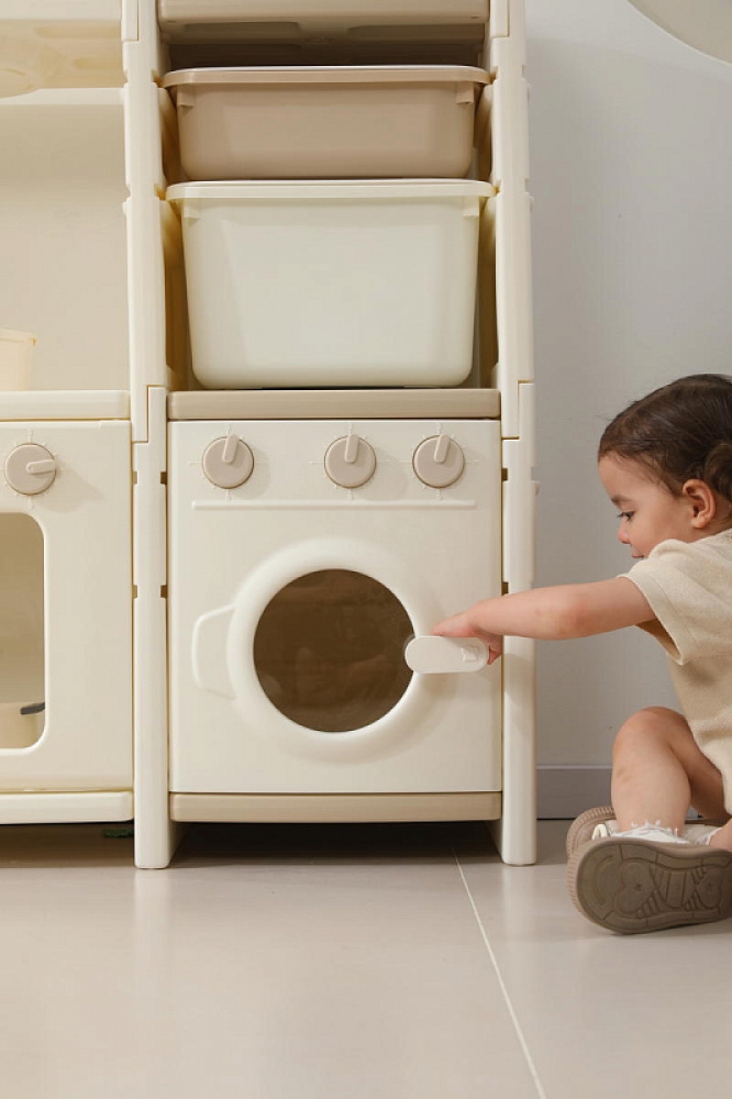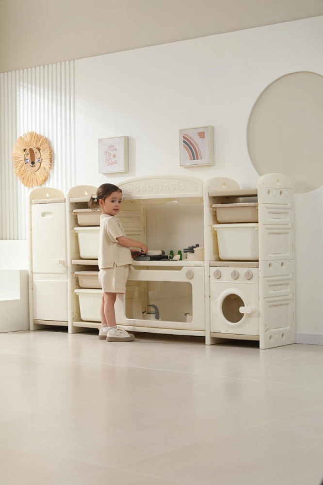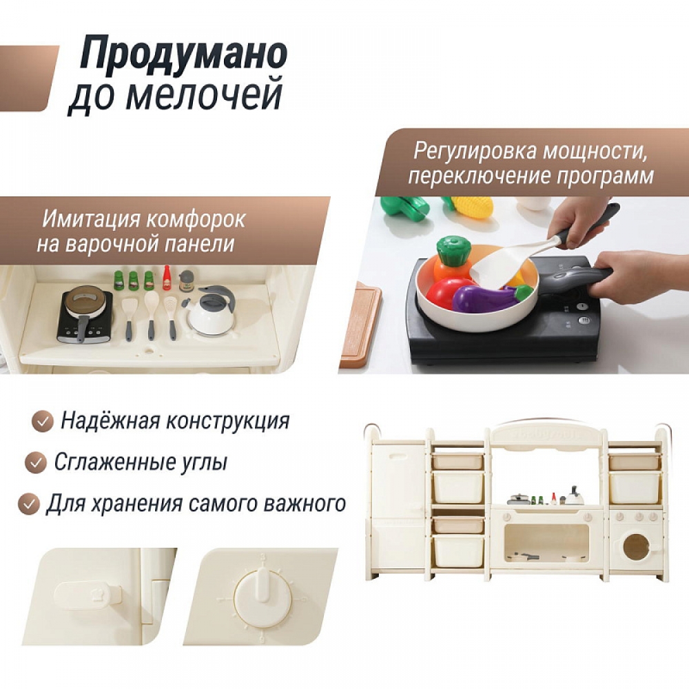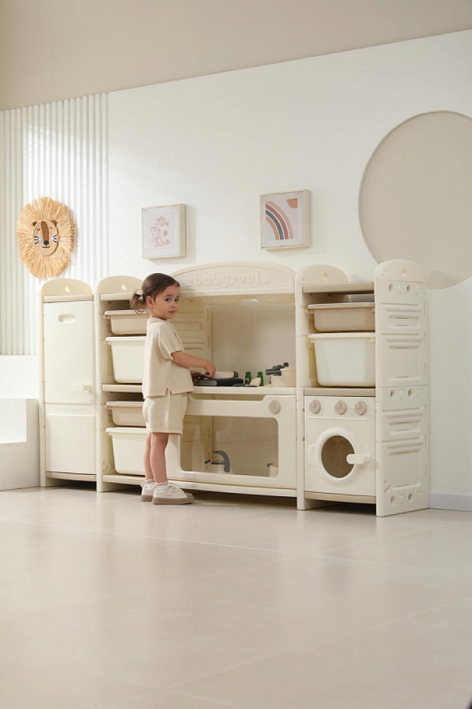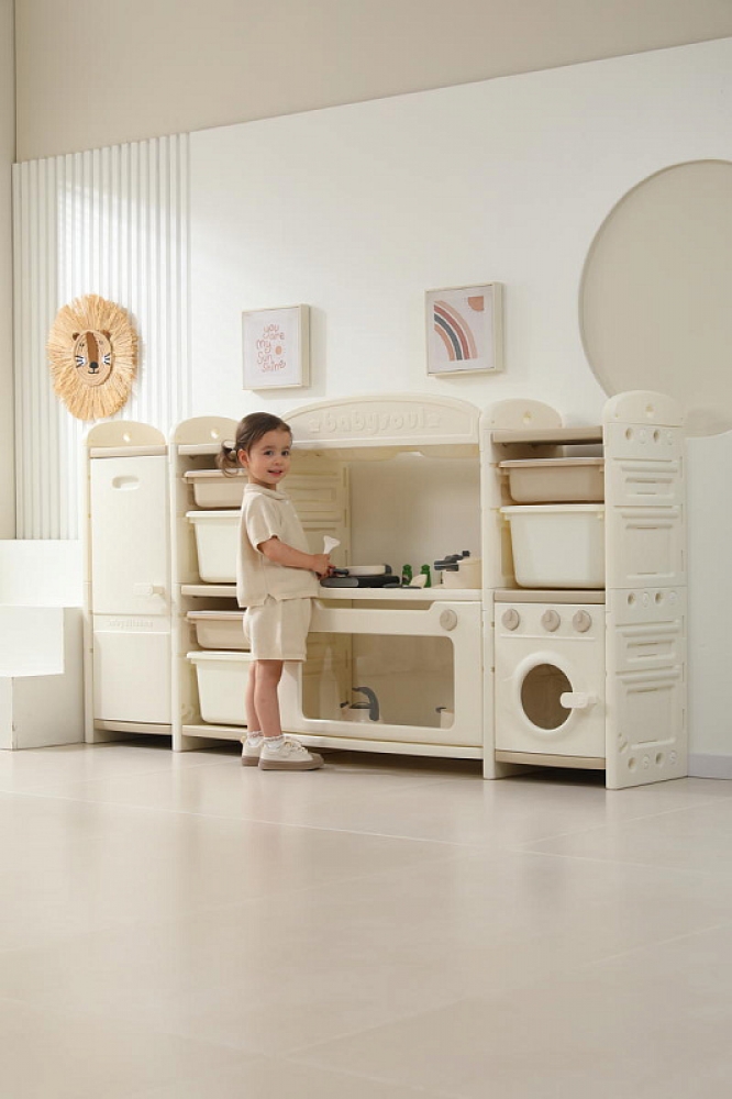 Развивающая игрушка кухня по системе Монтессори способствует развитию мелкой моторики, логического мышления и креативности. Ребенок сможет изучать основы приготовления пищи, комбинировать различные ингредиенты и даже разрабатывать свои собственные рецепты! В процессе игры малыш научится различать продукты, кухонные принадлежности, столовые приборы и поймет, как работает плита и духовка. А вместительные ящики с крышками можно использовать для хранения посуды и продуктов из набора.