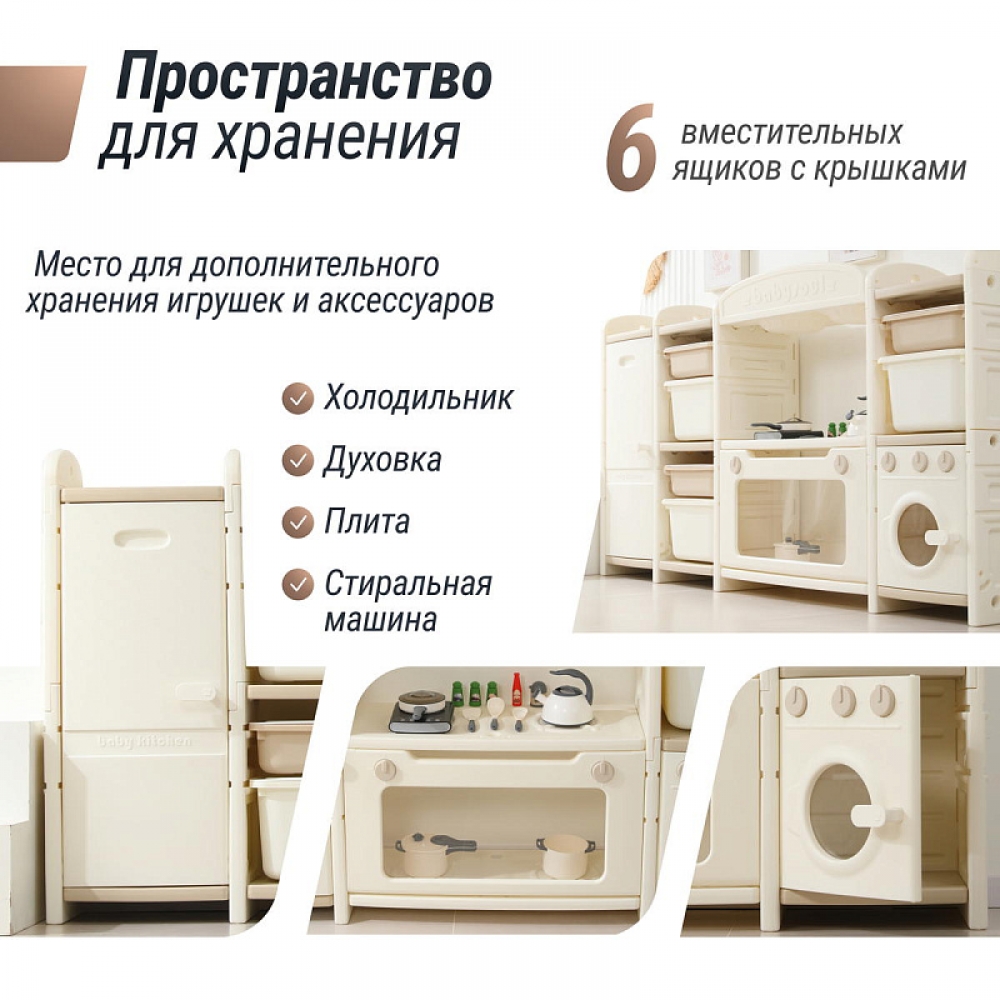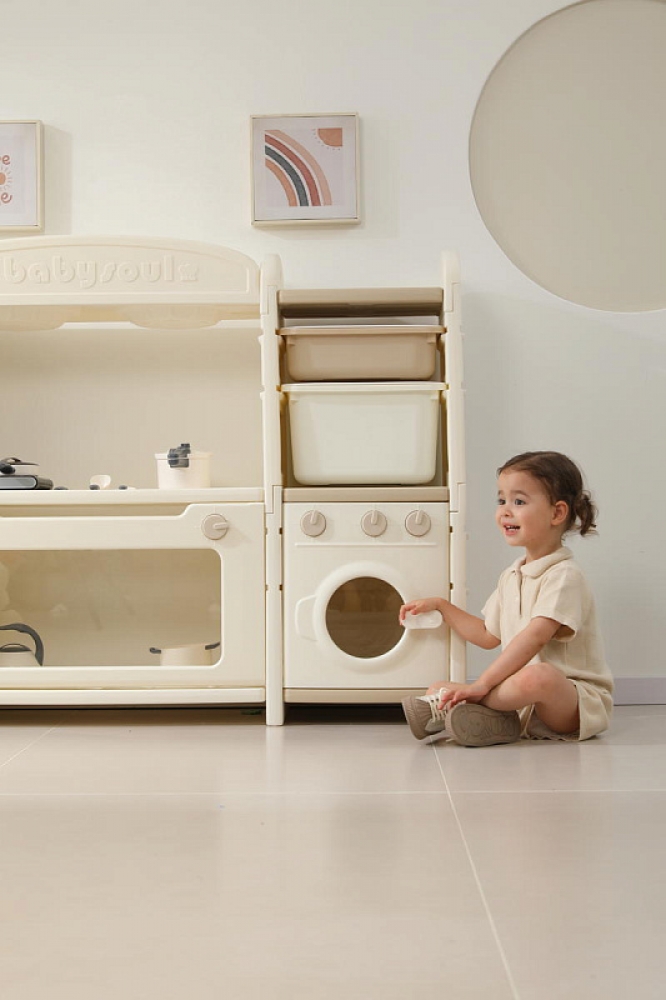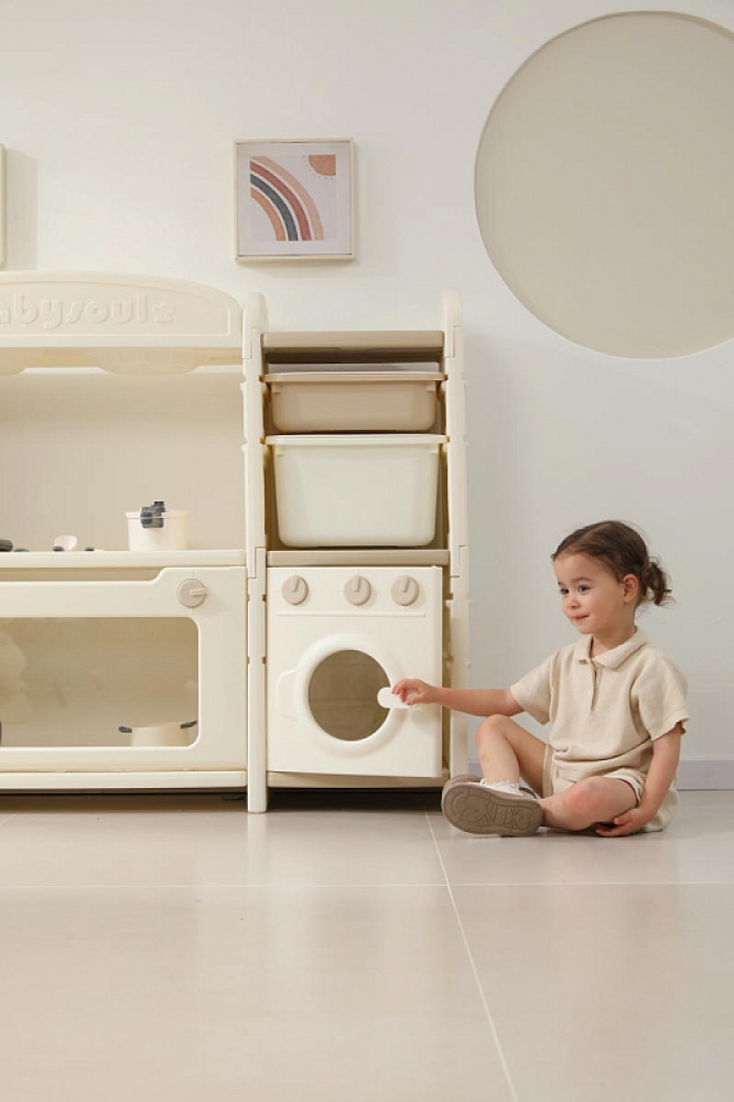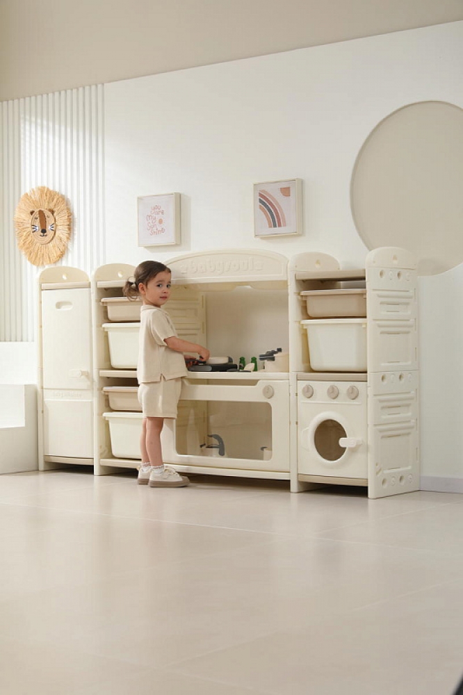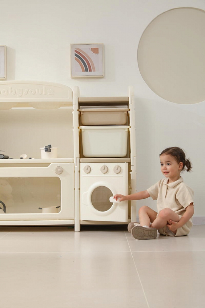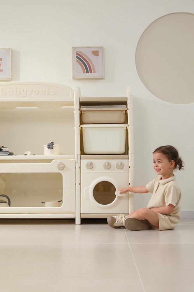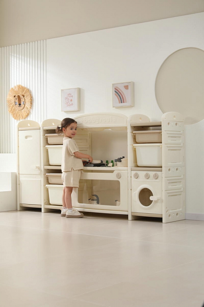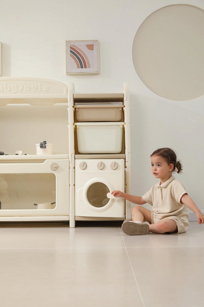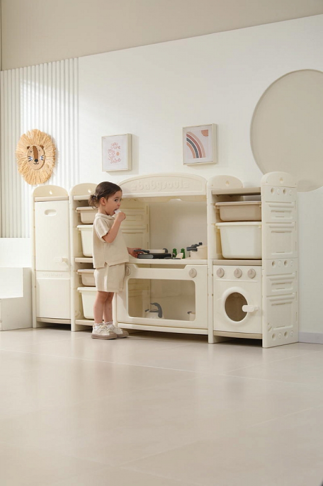 Развивающая игрушка кухня по системе Монтессори способствует развитию мелкой моторики, логического мышления и креативности. Ребенок сможет изучать основы приготовления пищи, комбинировать различные ингредиенты и даже разрабатывать свои собственные рецепты! В процессе игры малыш научится различать продукты, кухонные принадлежности, столовые приборы и поймет, как работает плита и духовка. А вместительные ящики с крышками можно использовать для хранения посуды и продуктов из набора.