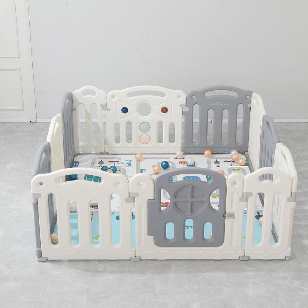 В комплекте со всеми моделями манежей UNIX line™ поставляется красочная игровая панель (бизиборд), хорошо развивающая мелкую моторику и умственные способности ребенка. Комплектация Classic дополнительно включает в себя двусторонний полиуретановый коврик толщиной 10 мм и набор из 30 разноцветных шаров. Рифленая поверхность коврика не пропускает холод, смягчает падения при первых шагах и легка в уходе.