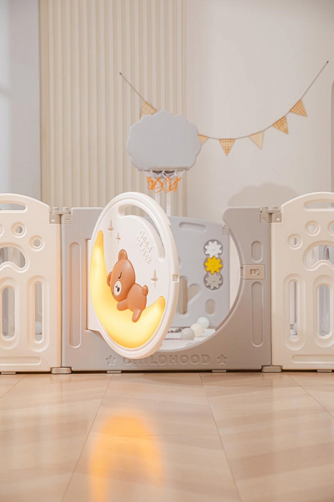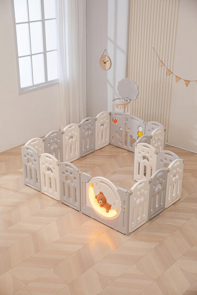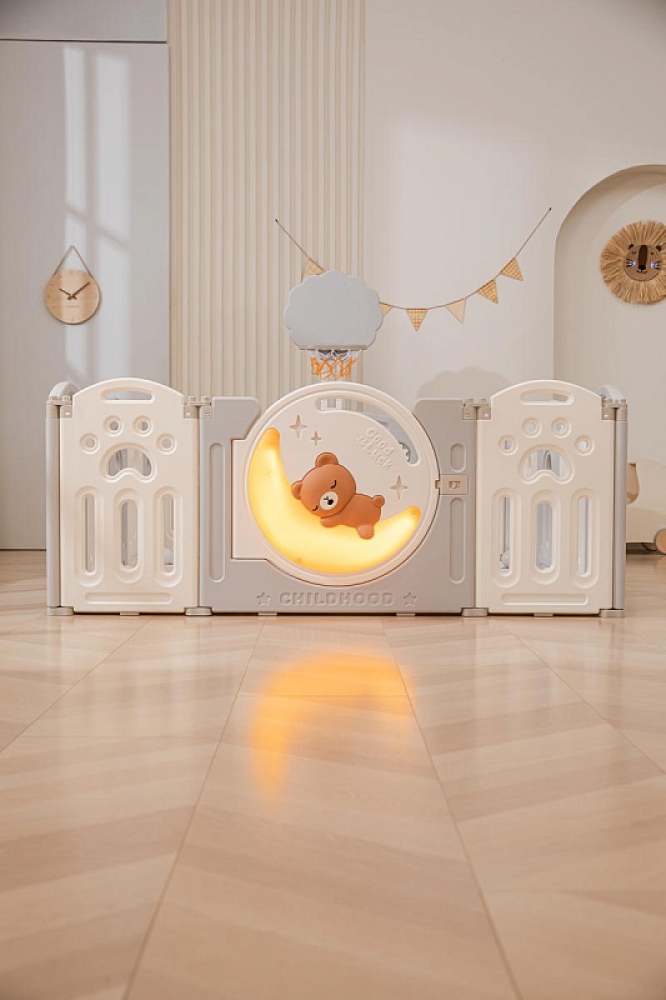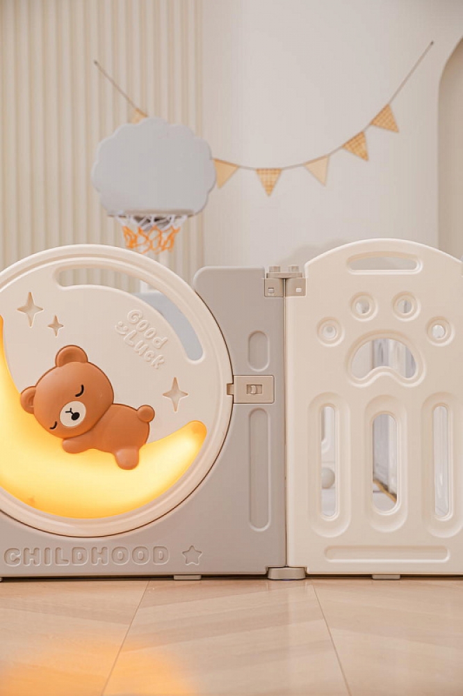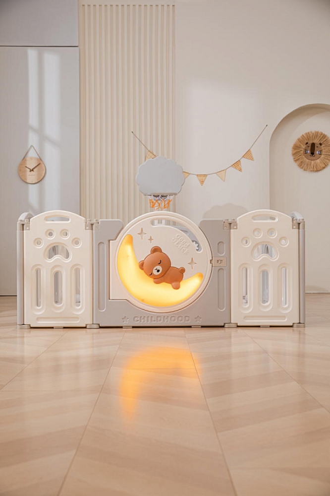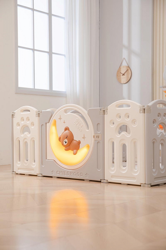 Мы предлагаем не просто манеж ограждение, а стильный игровой манеж с подсветкой двери, который подойдет под Ваш интерьер.