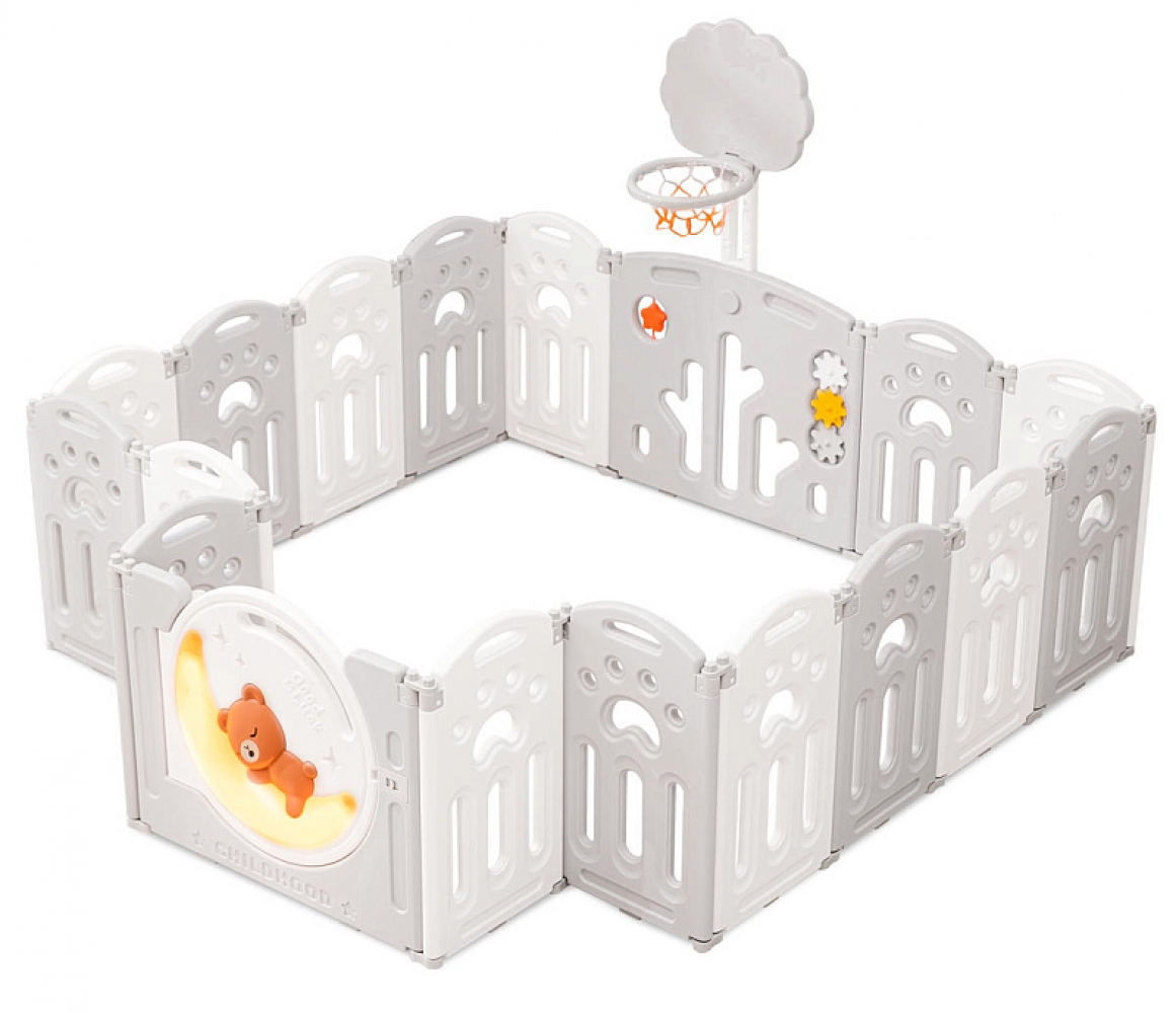 Манеж UNIX Kids DeLuxe Grey с баскетбольным кольцом и ковриком– это стильное и удобное решение для малышей от 6 месяцев до 6 лет. Напольный детский манеж изготовлен из прочного пищевого пластика, который не содержит вредных веществ и безопасен для вашего малыша. Манеж детский игровой имеет прочную конструкцию, которая обеспечивает стабильность и устойчивость, не позволяя манежу опрокинуться. По мере взросления, в игровое пространство детского манежа можно поместить любимые игрушки Вашего малыша, развивающие игры. Универсальный детский манеж можно использовать как в помещении, так и на улице. Высота каждой секции манежа составляет 63,5 см, а расстояние отверстия – 5 см.