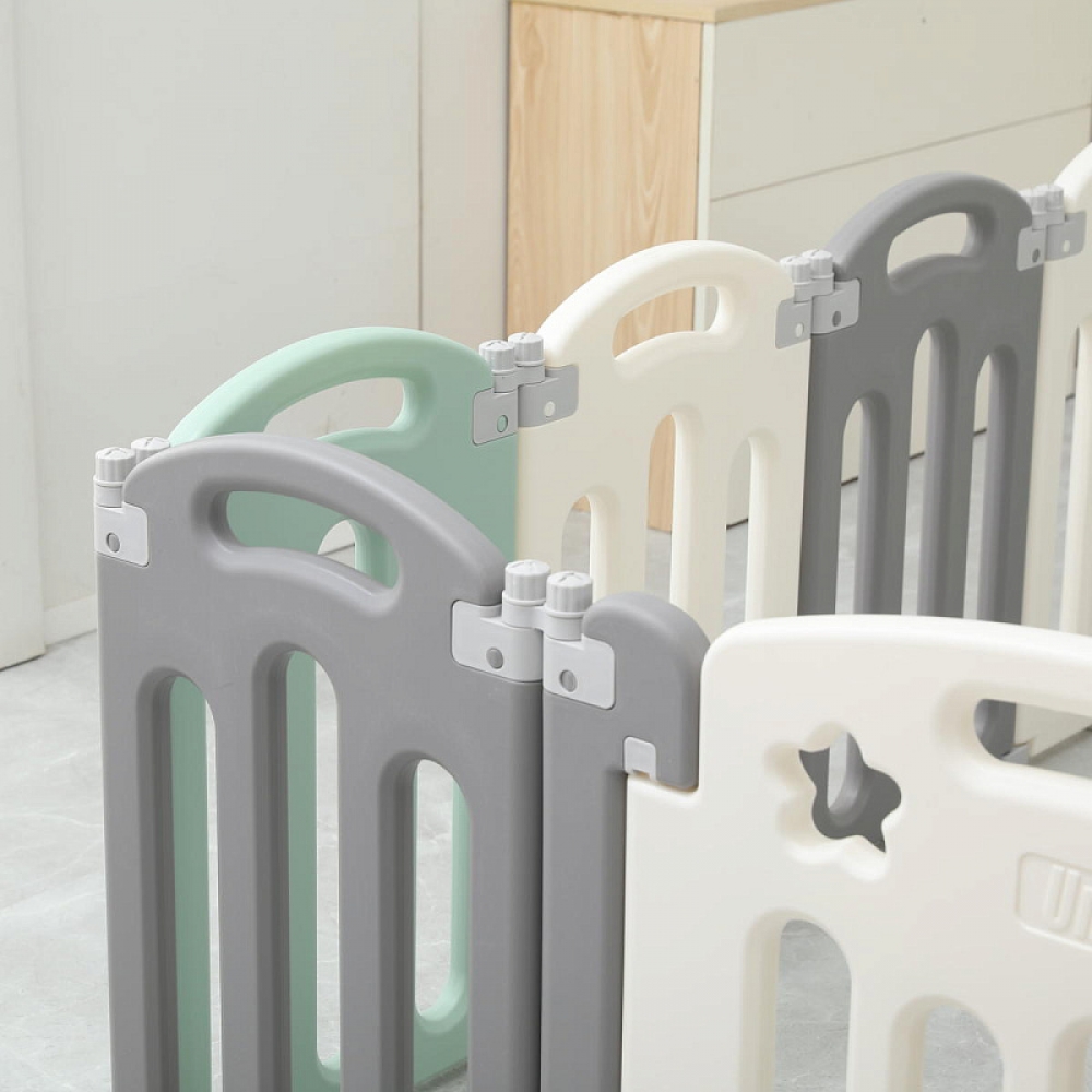 Легко хранить и перевозить. Манеж складывается за мгновение и уже готов для перевозки. Поднимите соединительные элементы вверх и сложите манеж, затем опустите их для фиксации.
