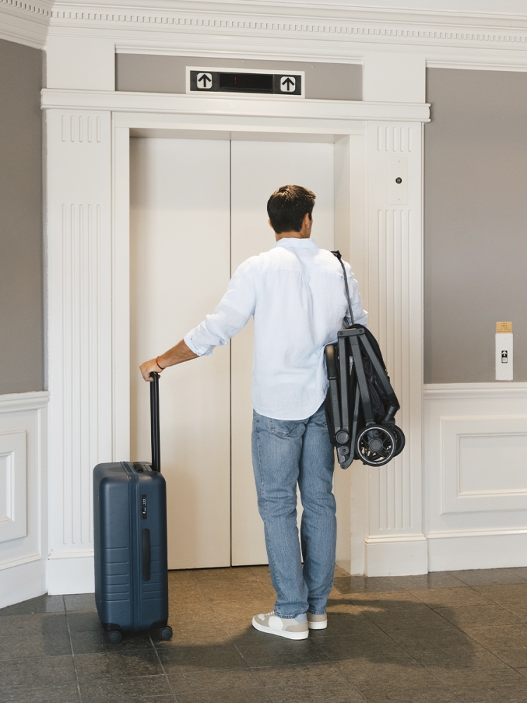 - Компактность и маневренность: MINU V3 создана для активных родителей. Складывается одним движением руки и занимает минимум места – идеально для путешествий, общественного транспорта и хранения дома. В сложенном виде стоит вертикально, экономя пространство.
