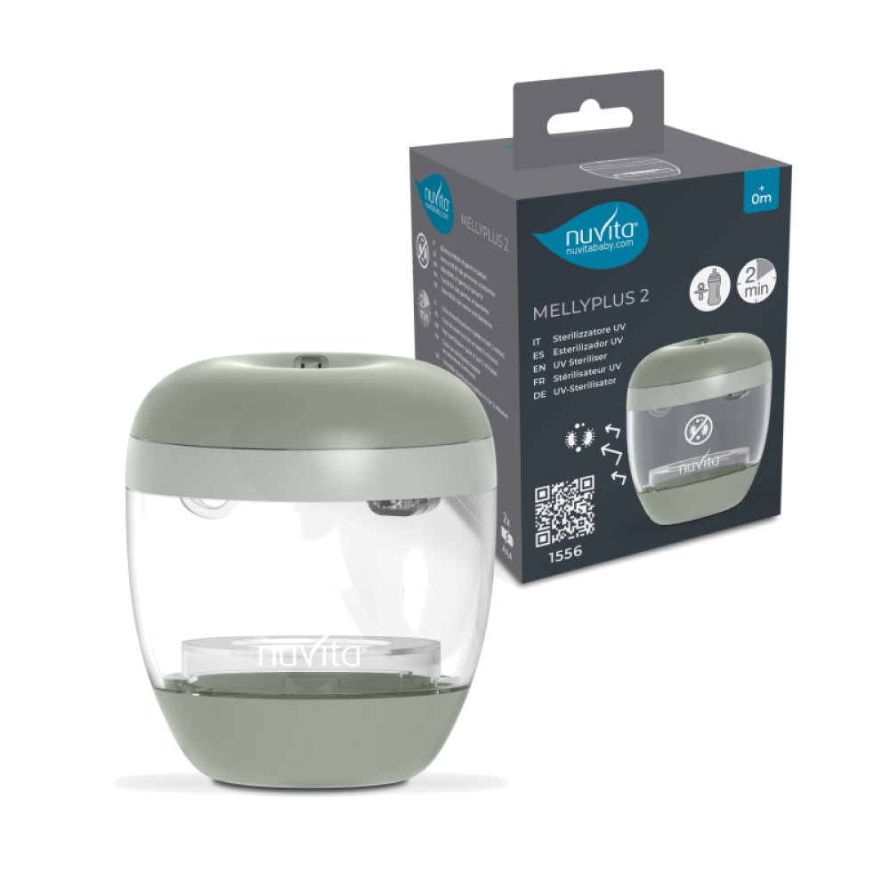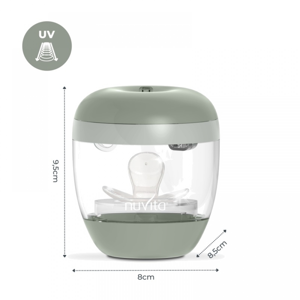 MellyPlus — это портативный ультрафиолетовый стерилизатор Nuvita, созданный для быстрой и эффективной стерилизации пустышек, сосок и бутылочек любых видов.
